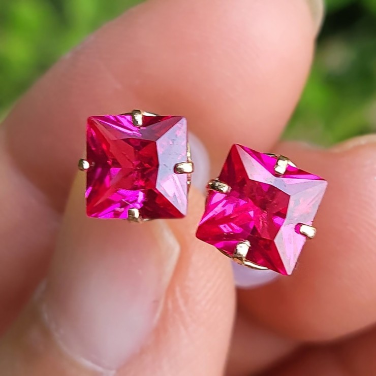 Princess cut 6mm합성루비 2pcs, 14골드 ±0.63g