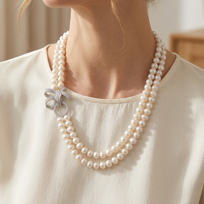 8mm 담수진주 2줄 목걸이