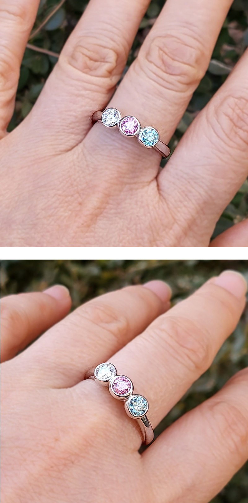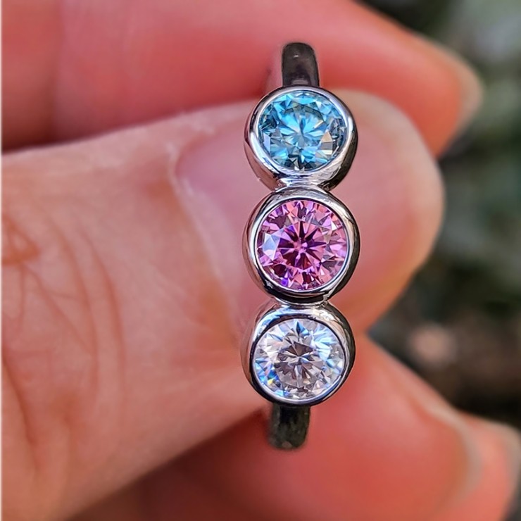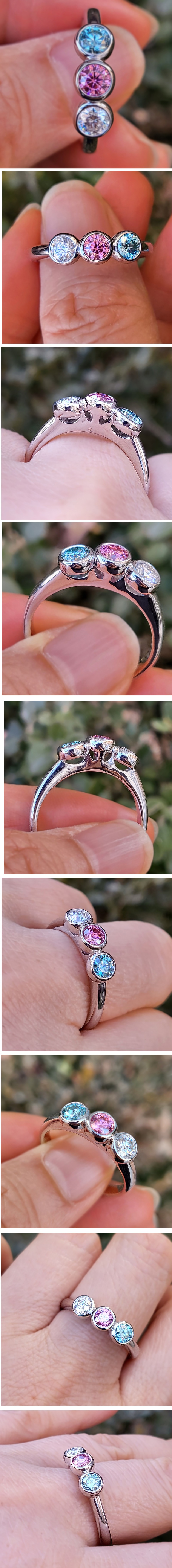 0.25캐럿(4mm) D컬러화이트, 핑크, 블루 모이사나이트 3pcs, 14k화이트골드 중량 : ±4.5g