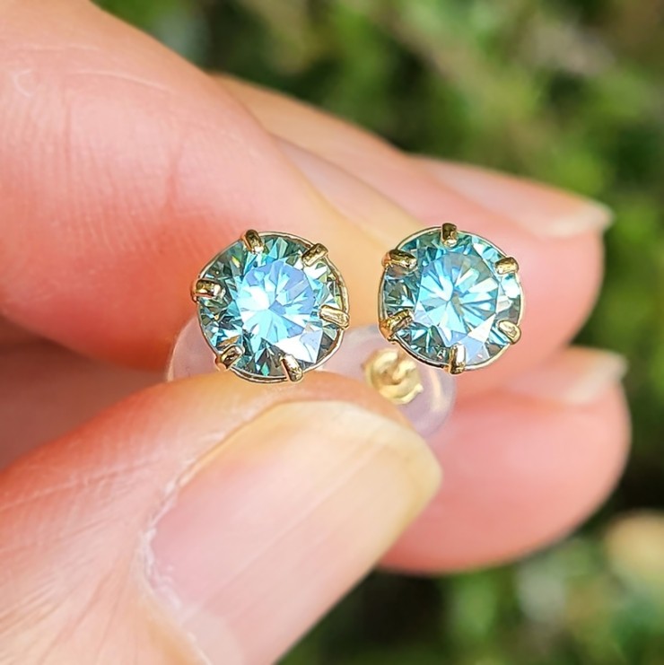 0.6캐럿(5.5mm) 블루모이사나이트 2pc, 14k골드 ±0.63g