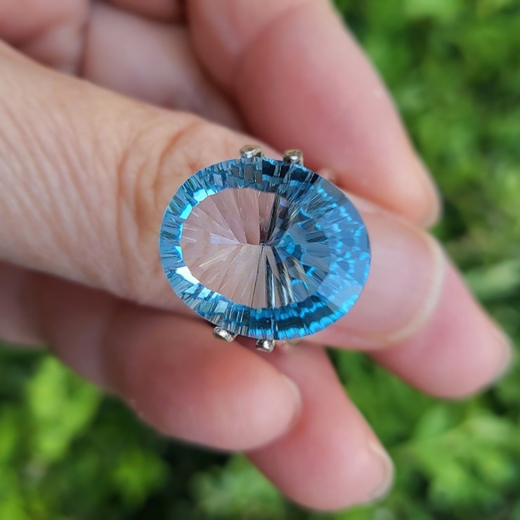 18.4캐럿(18.64x13.85x9.96mm) 사이즈 천연스위스 블루토파즈가 있습니다.