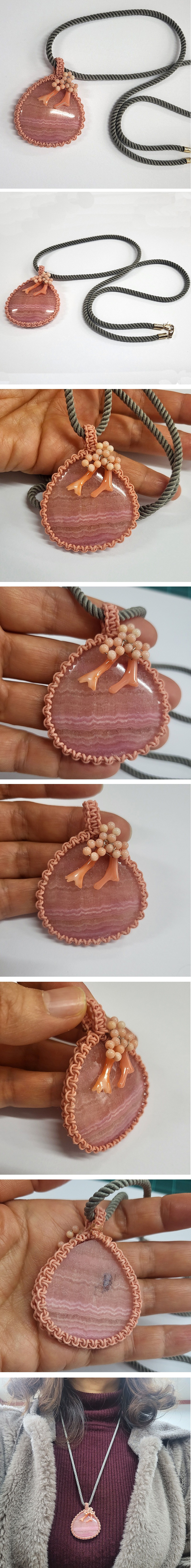 로도크로사이트 마크라메 매듭 펜던트와 14k골드마감장치실크목걸이줄