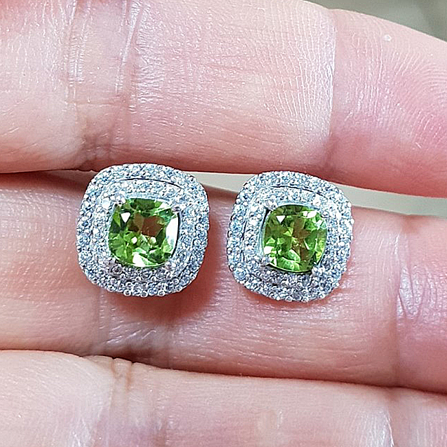 천연페리도트5mm쿠션컷, 실버92.5% 2.3g, 폭10x10mm, 큐빅세팅