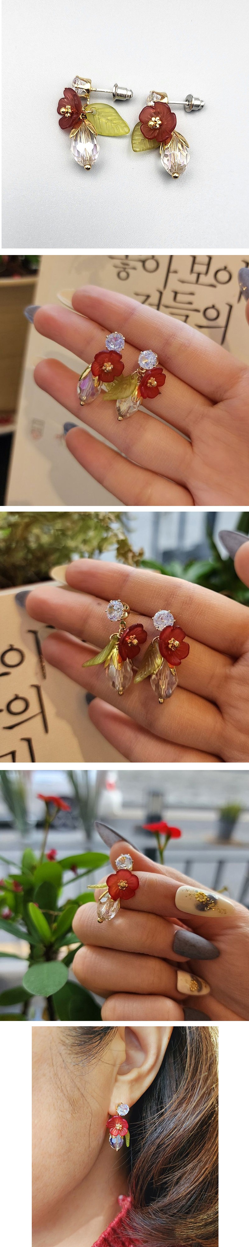 동백꽃을 연상케하는 예쁜 꽃귀걸이입니다.