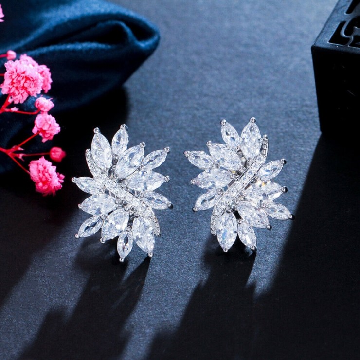 CZ 플라워 맆 클립온귀걸이