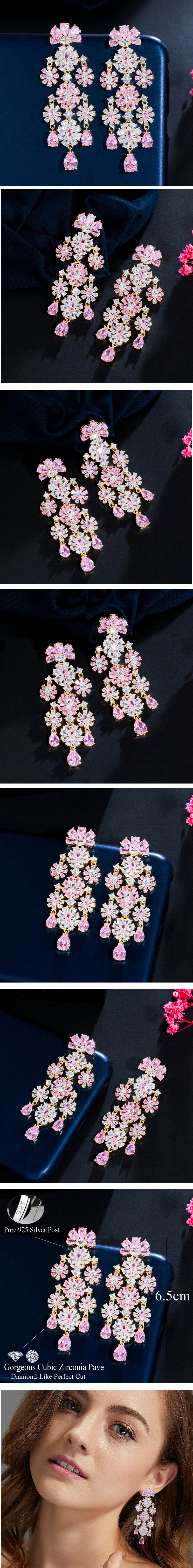 롱태슬 화이트&핑크 플라워 CZ드랍귀걸이