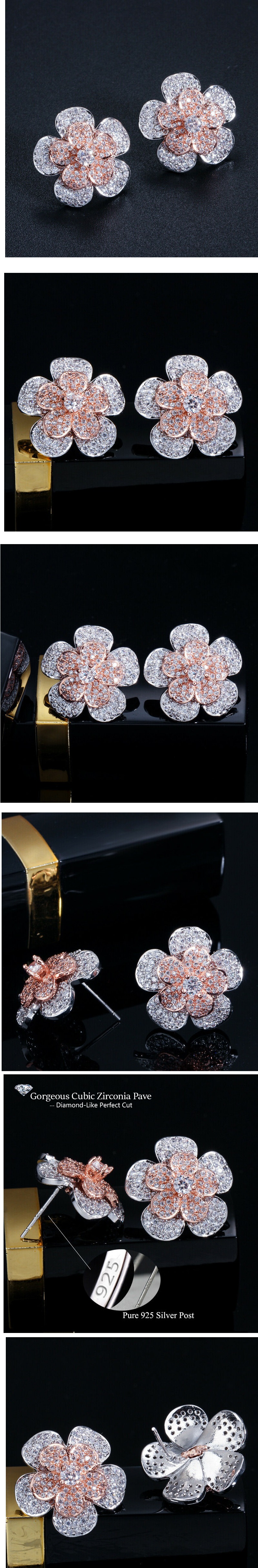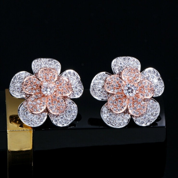 2 tone CZ 크리스탈 플라워 stud 귀걸이