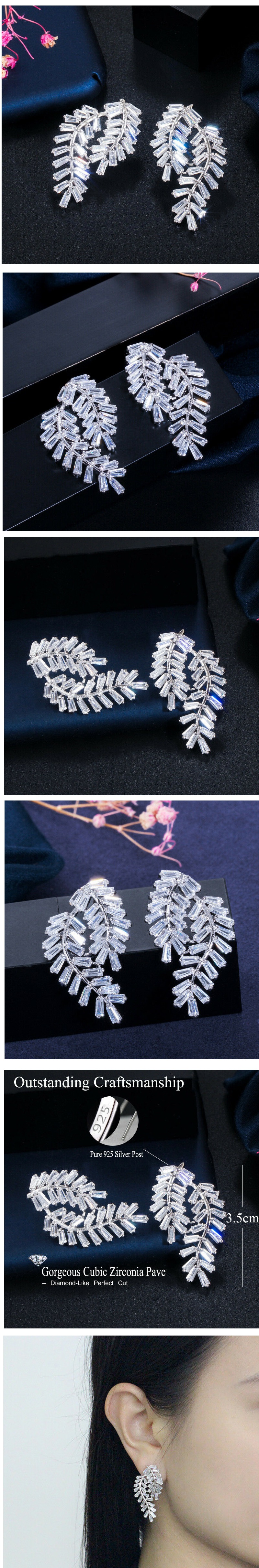 Leaf 쉐입 CZ 크리스탈 stud 귀걸이