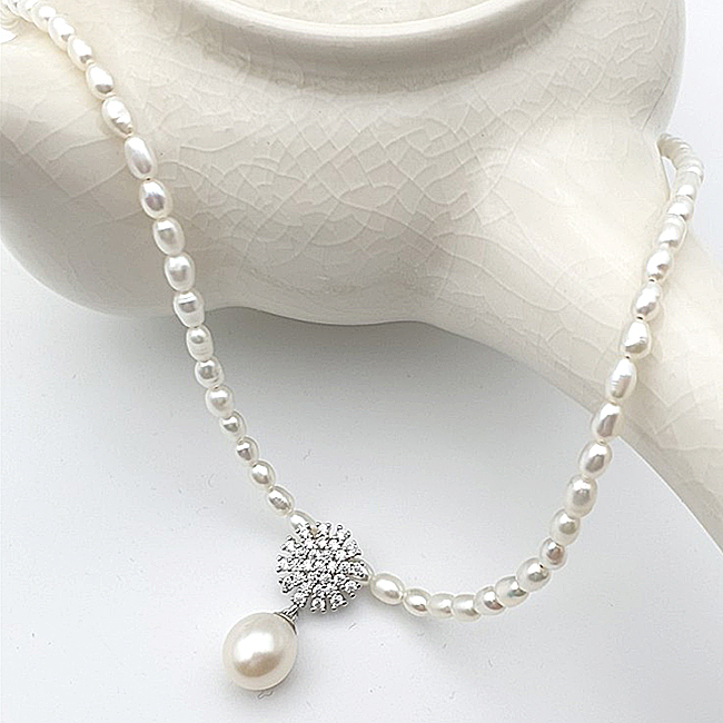 3x5mm라이스담수진주, 진주펜던트(10x22mm(진주길이10mm), 큐빅, 메탈), 925실버잠금장치