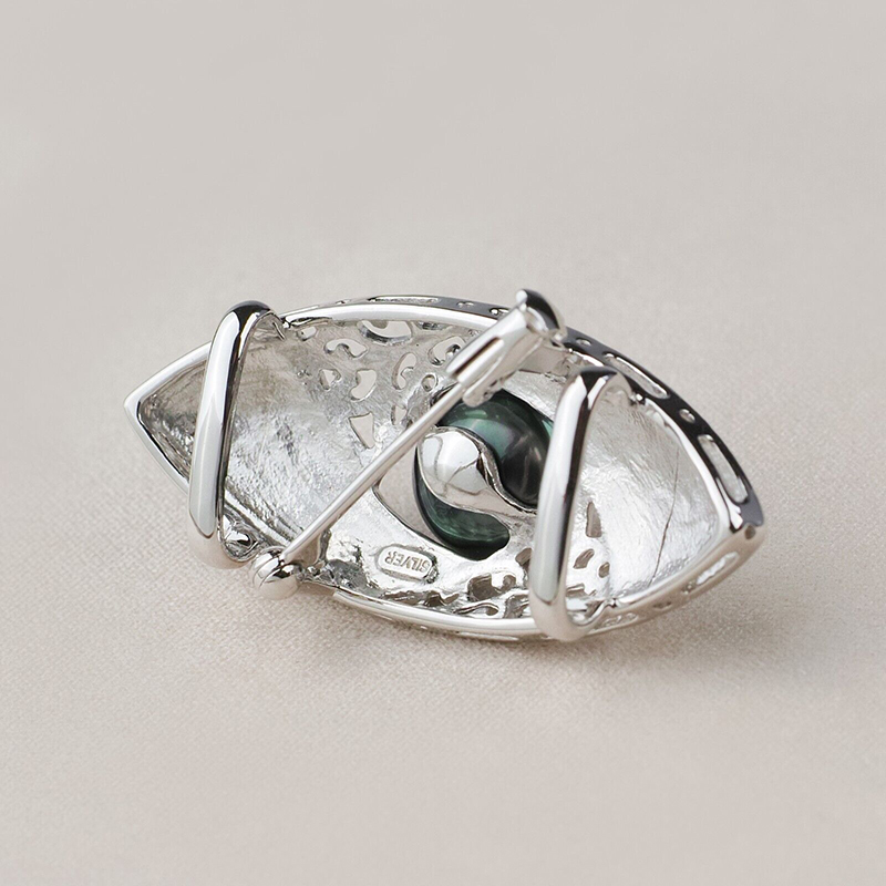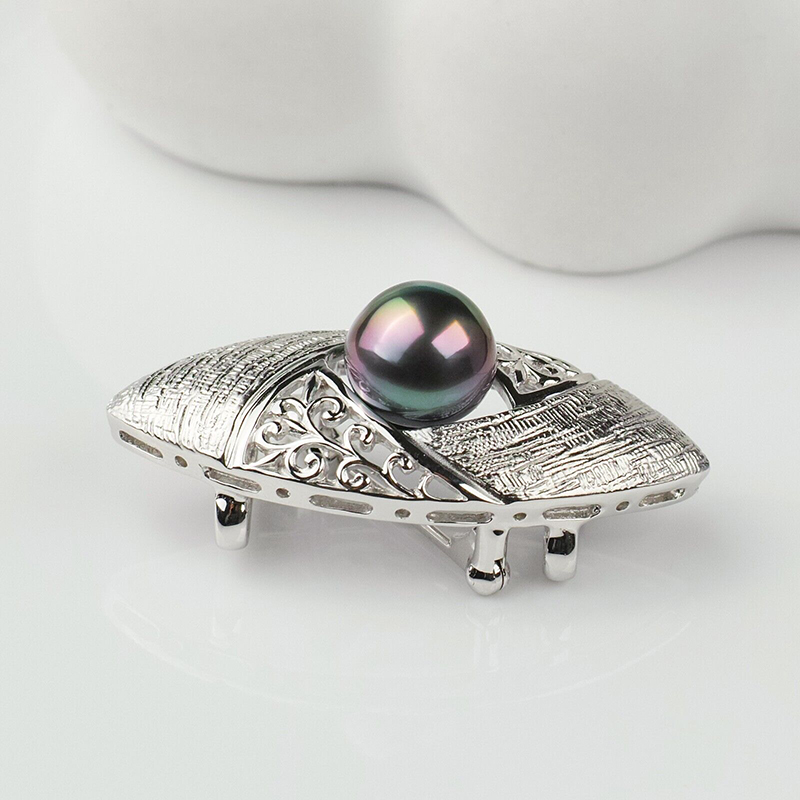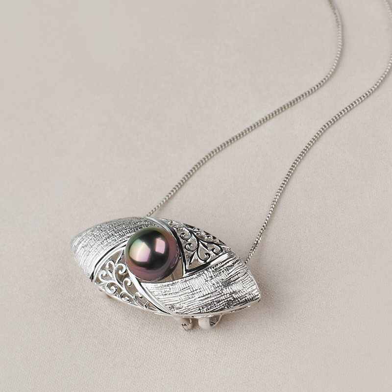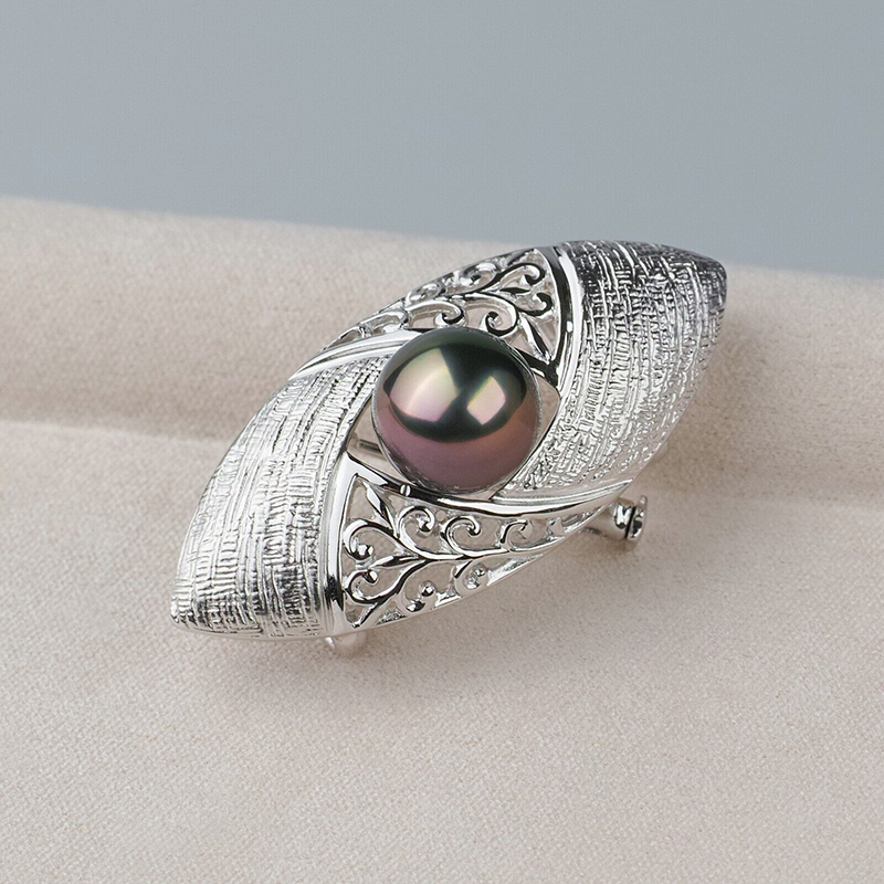 925 sterling silver에 10.6mm 흑진주가 세팅된 브로치로도