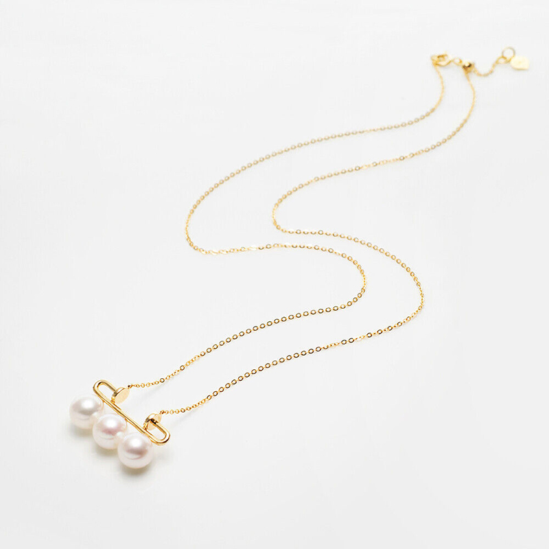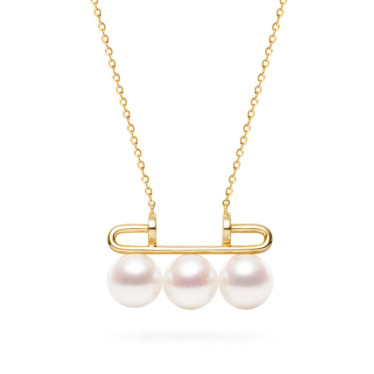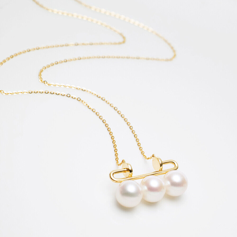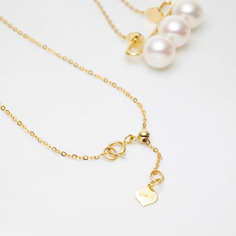 7.5mm 3알아코야진주18K골드목걸이