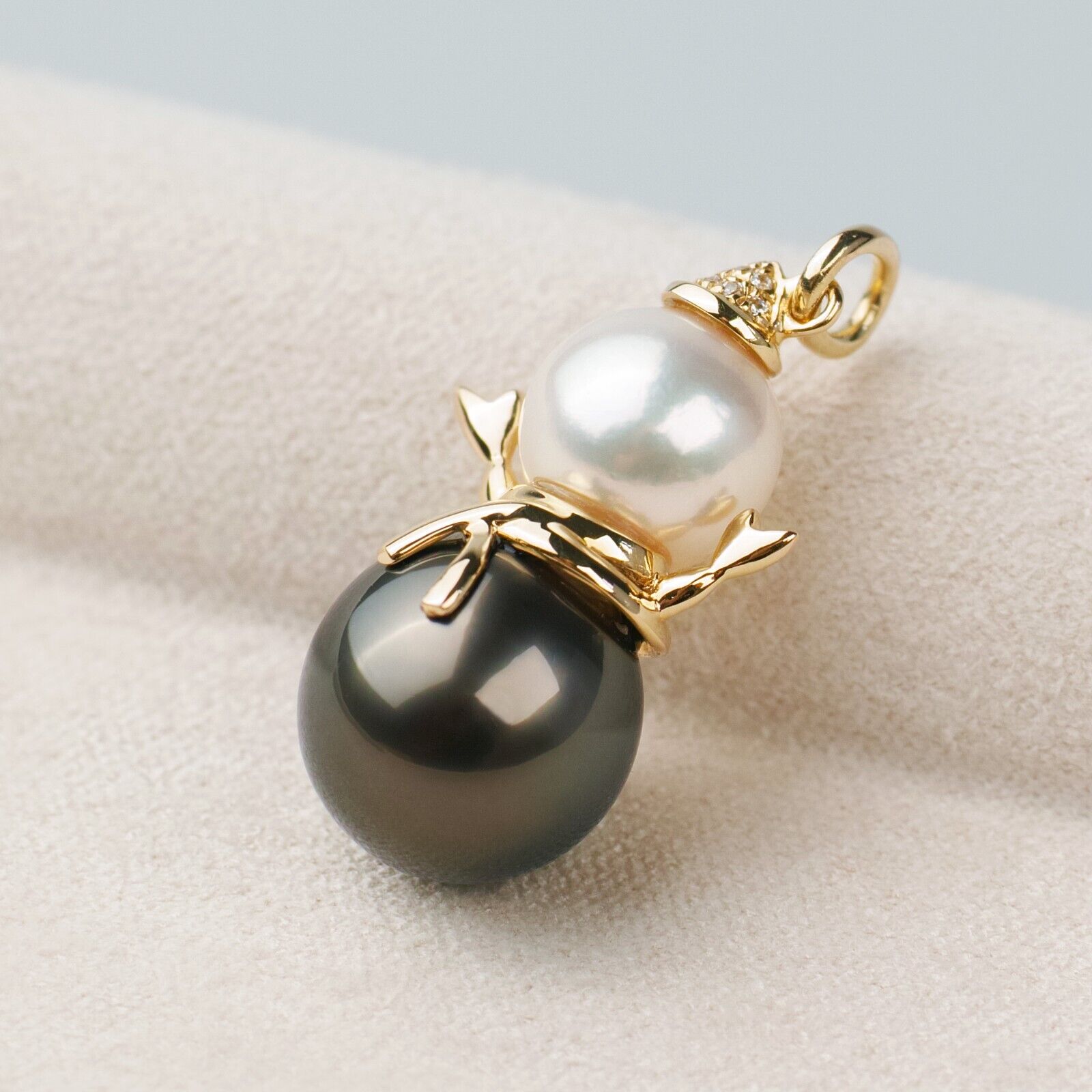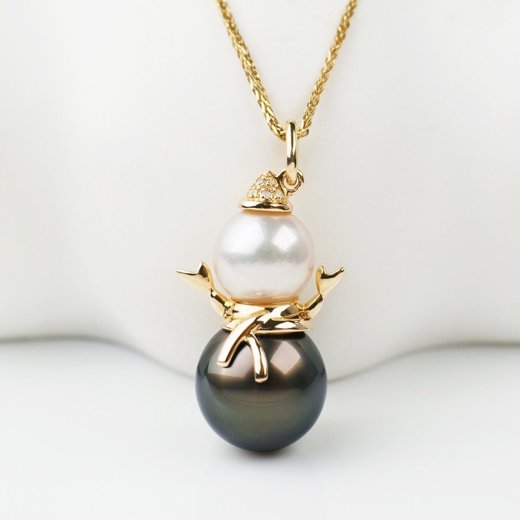 7.4mm와 9.6mm의 아코야진주와 타히티흑진주로 눈사람을 예쁘게 만들었네요.