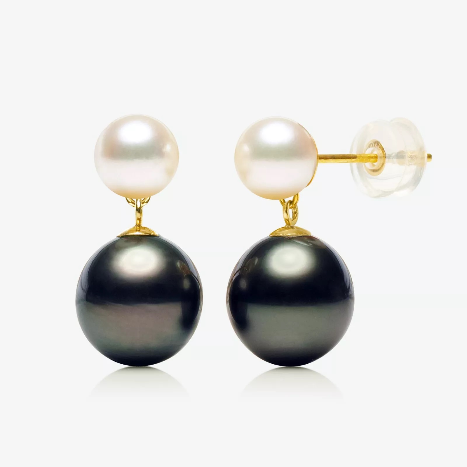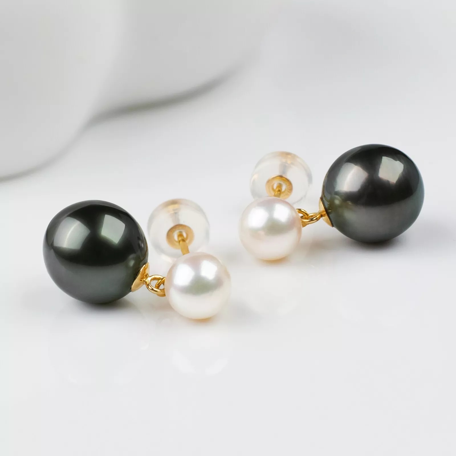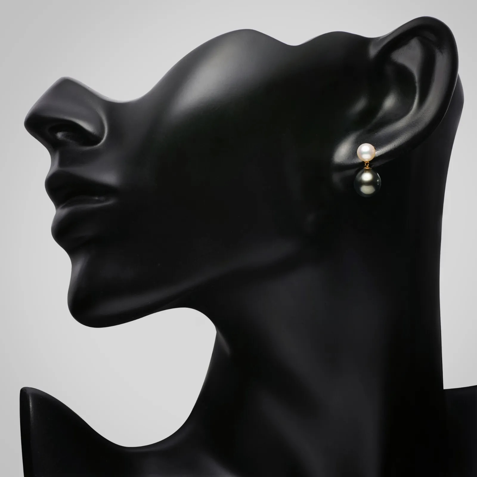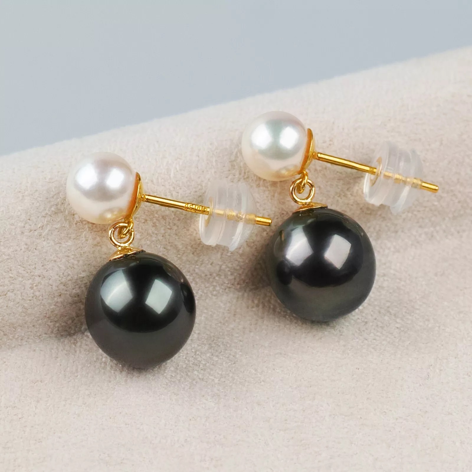 아코야진주&타히티흑진주 더블라인 18k골드귀걸이
