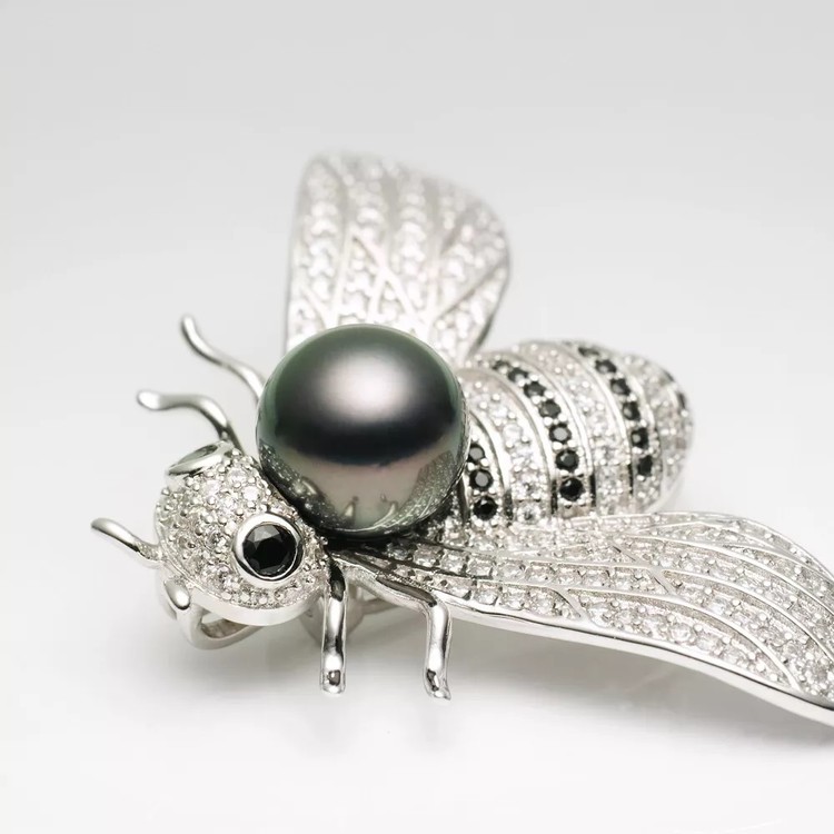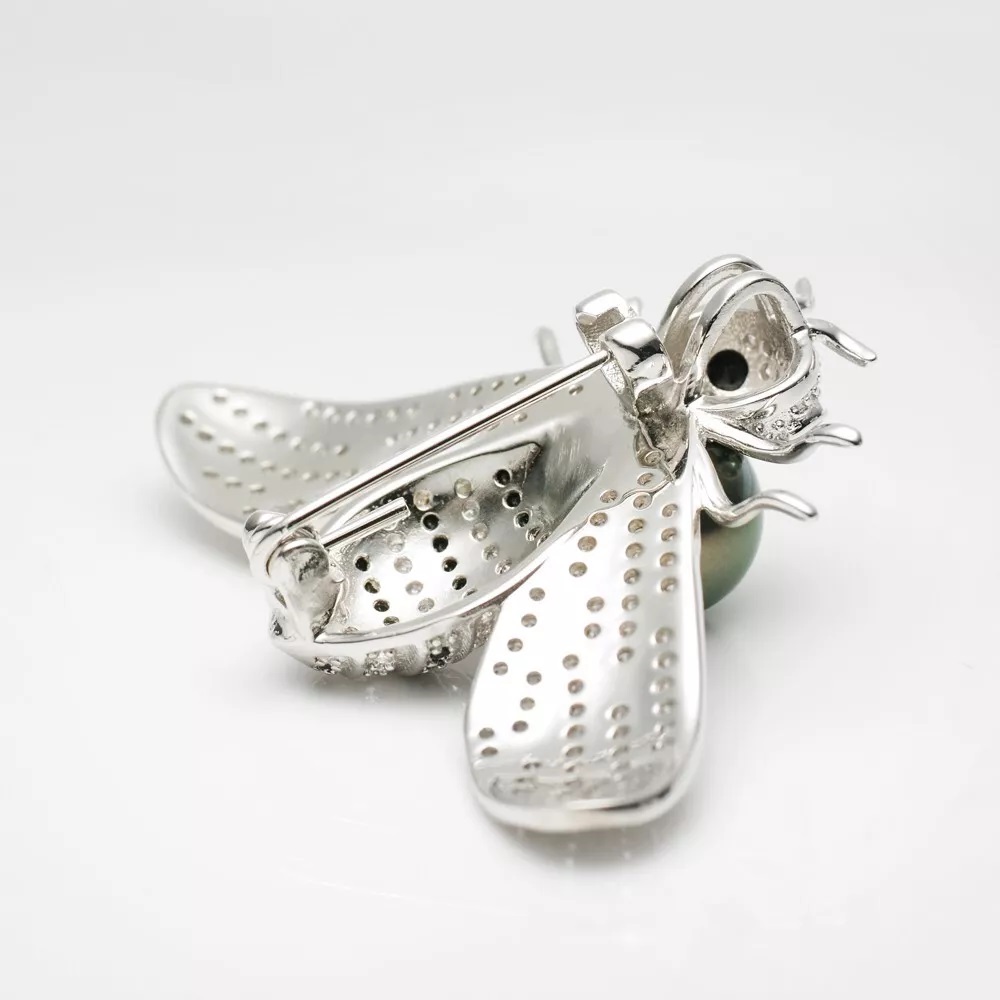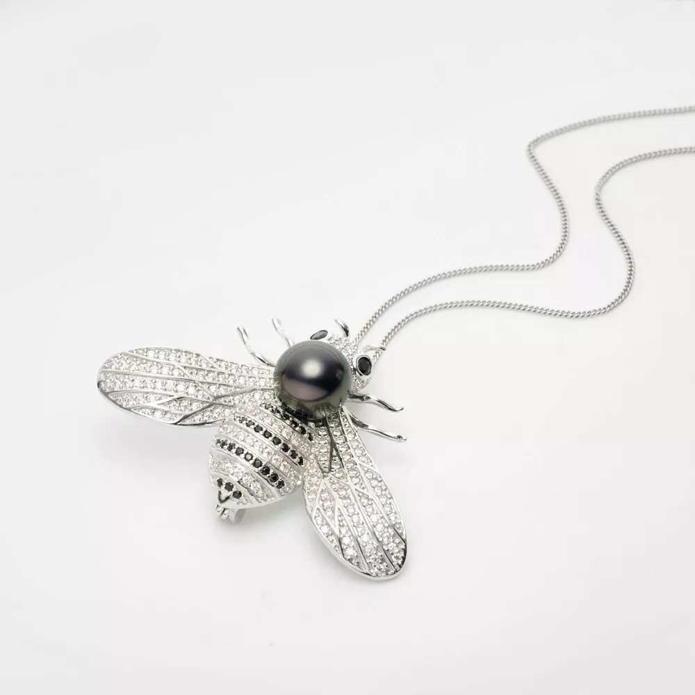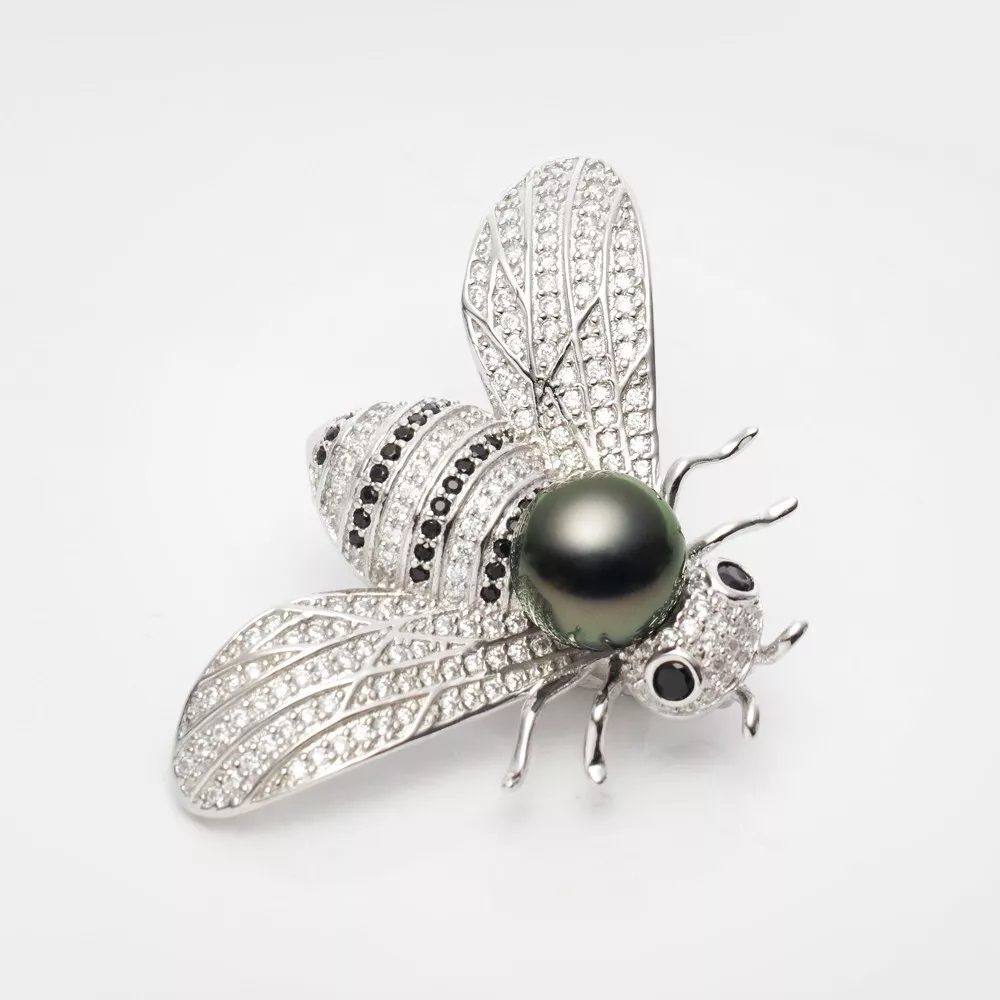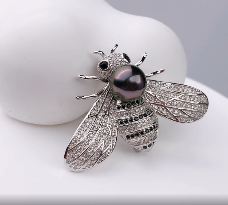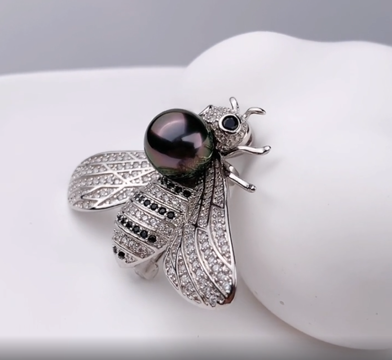 10mm블랙그린타히티흑진주브로치겸 꿀벌펜던트