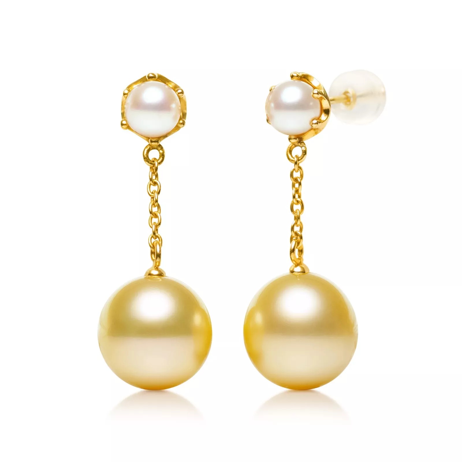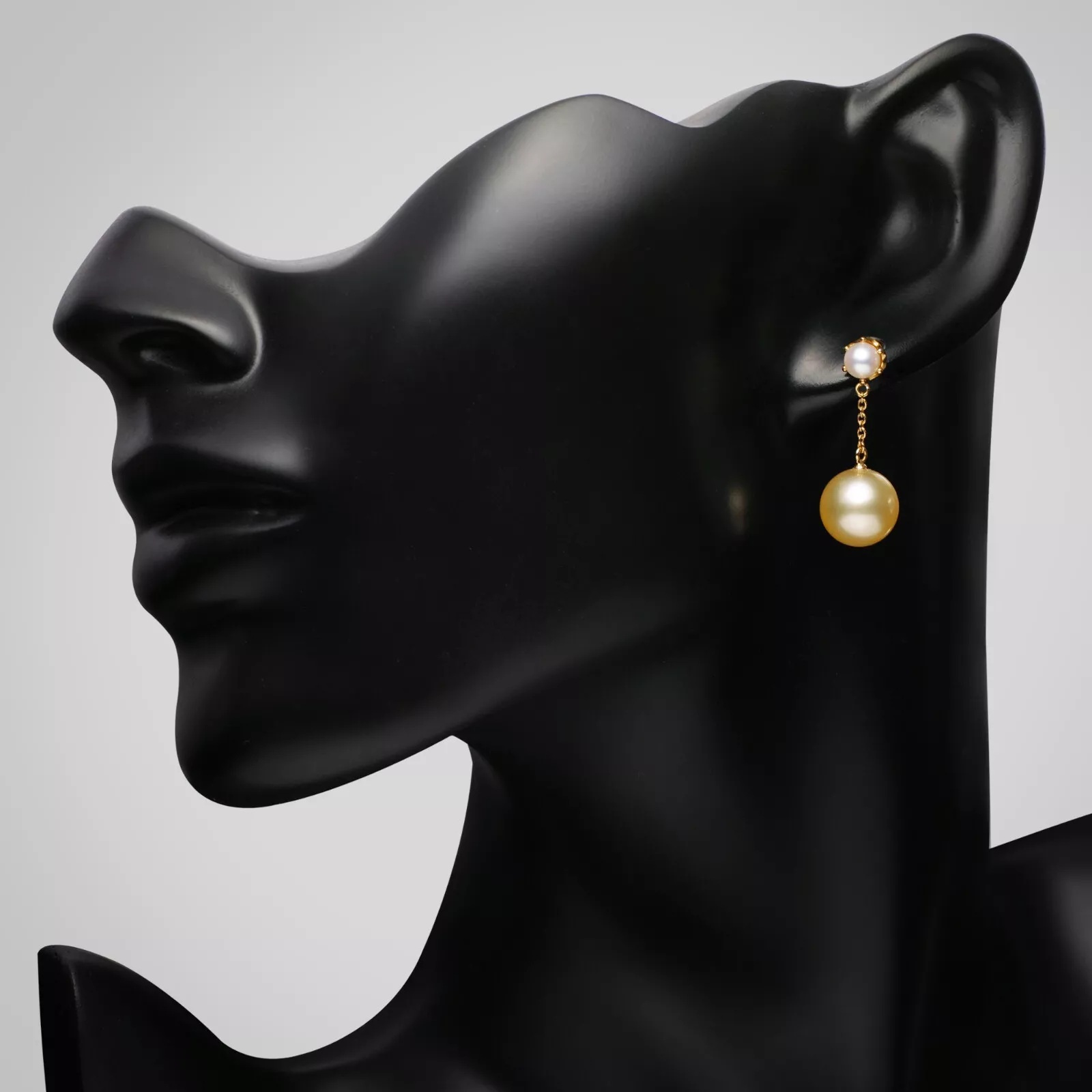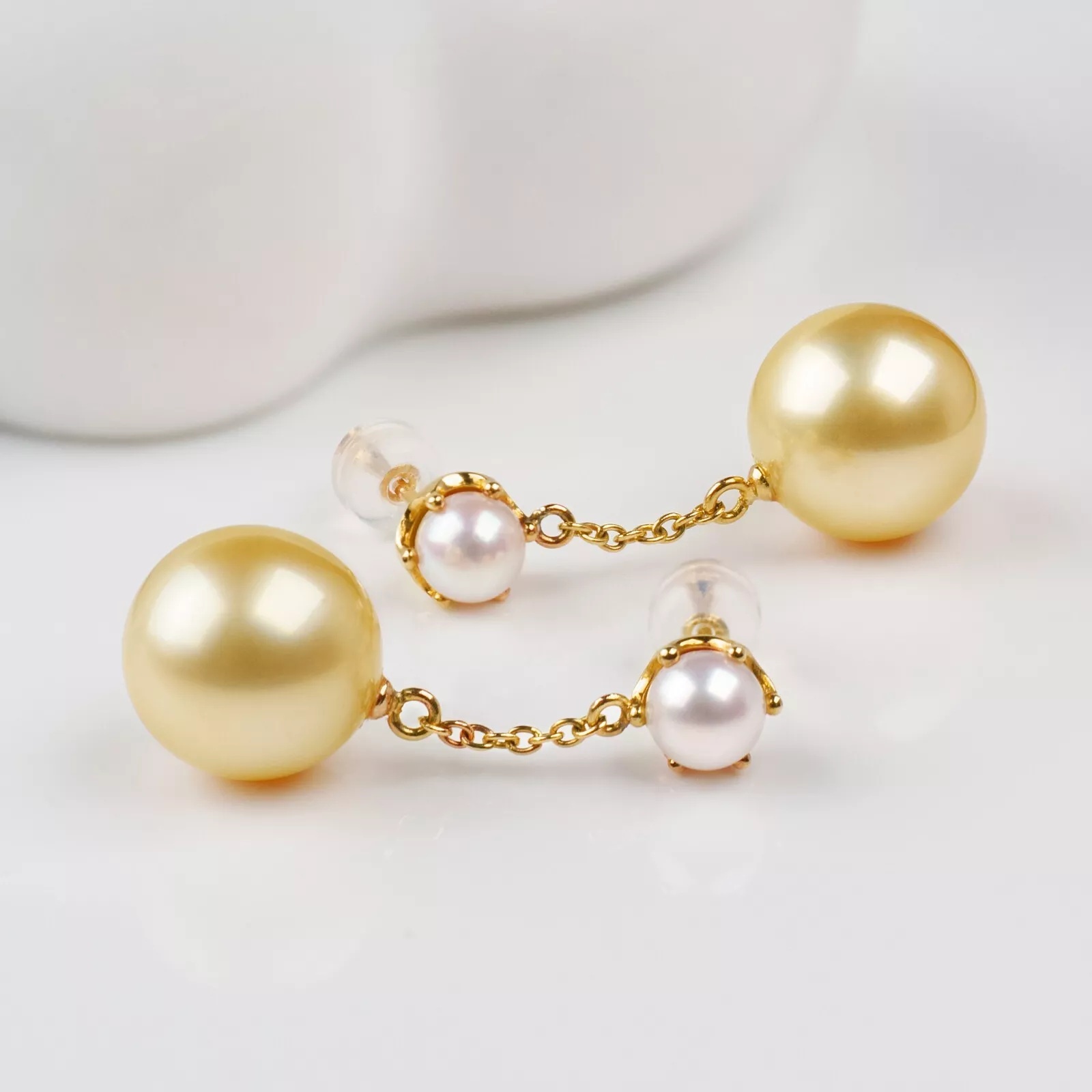 화이트아코야진주&라이트골드컬러남양진주 더블라인18k골드귀걸이