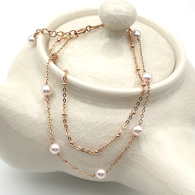 4mm아코야진주7pcs, 14k로즈골드 3푼체인 & 5푼볼체인