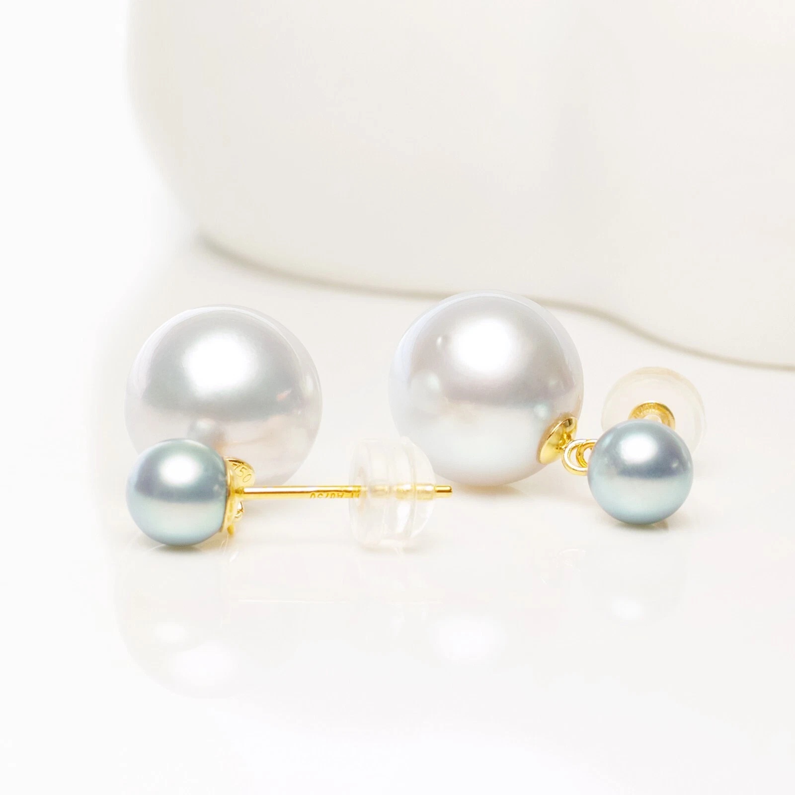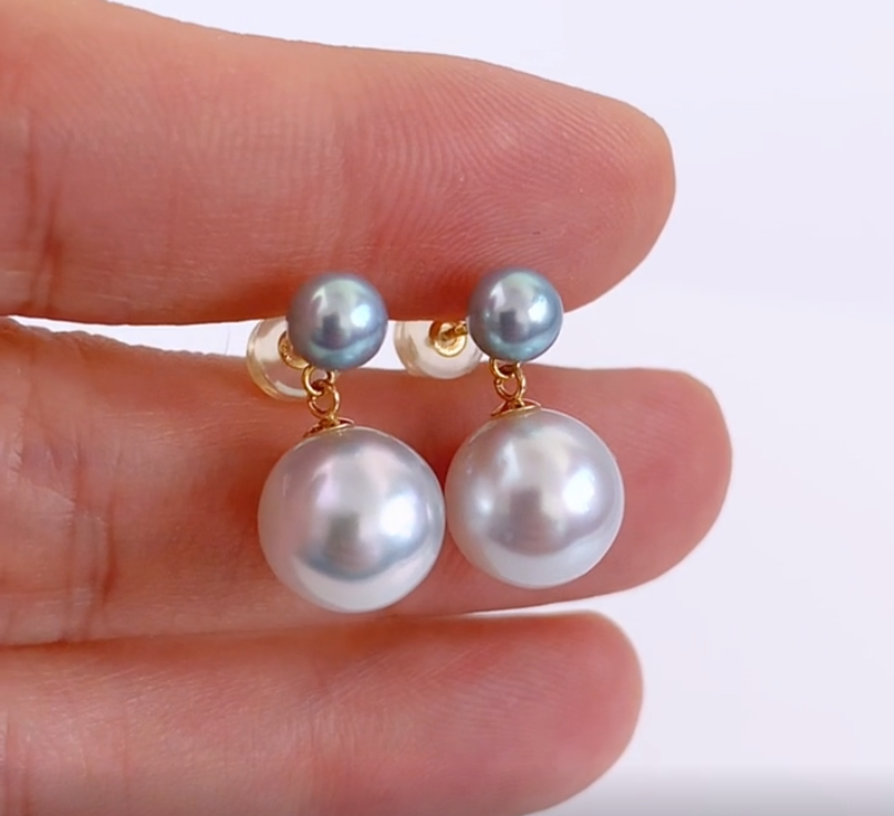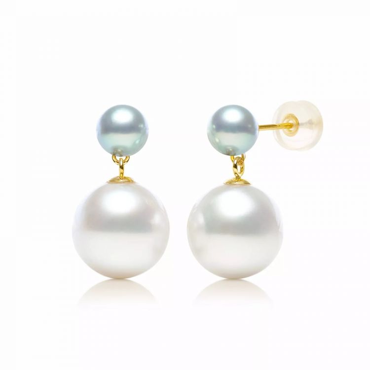 아코야진주와 남양진주로 이루어진 귀걸이입니다.