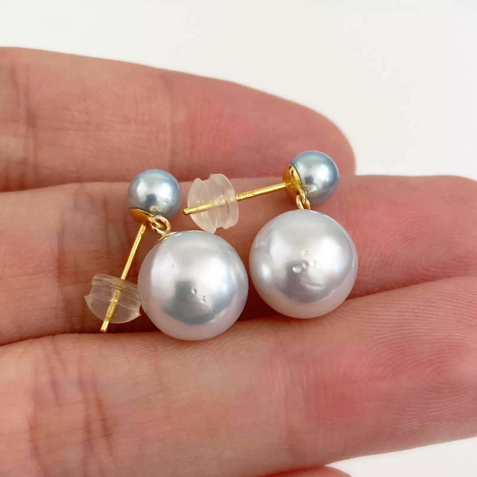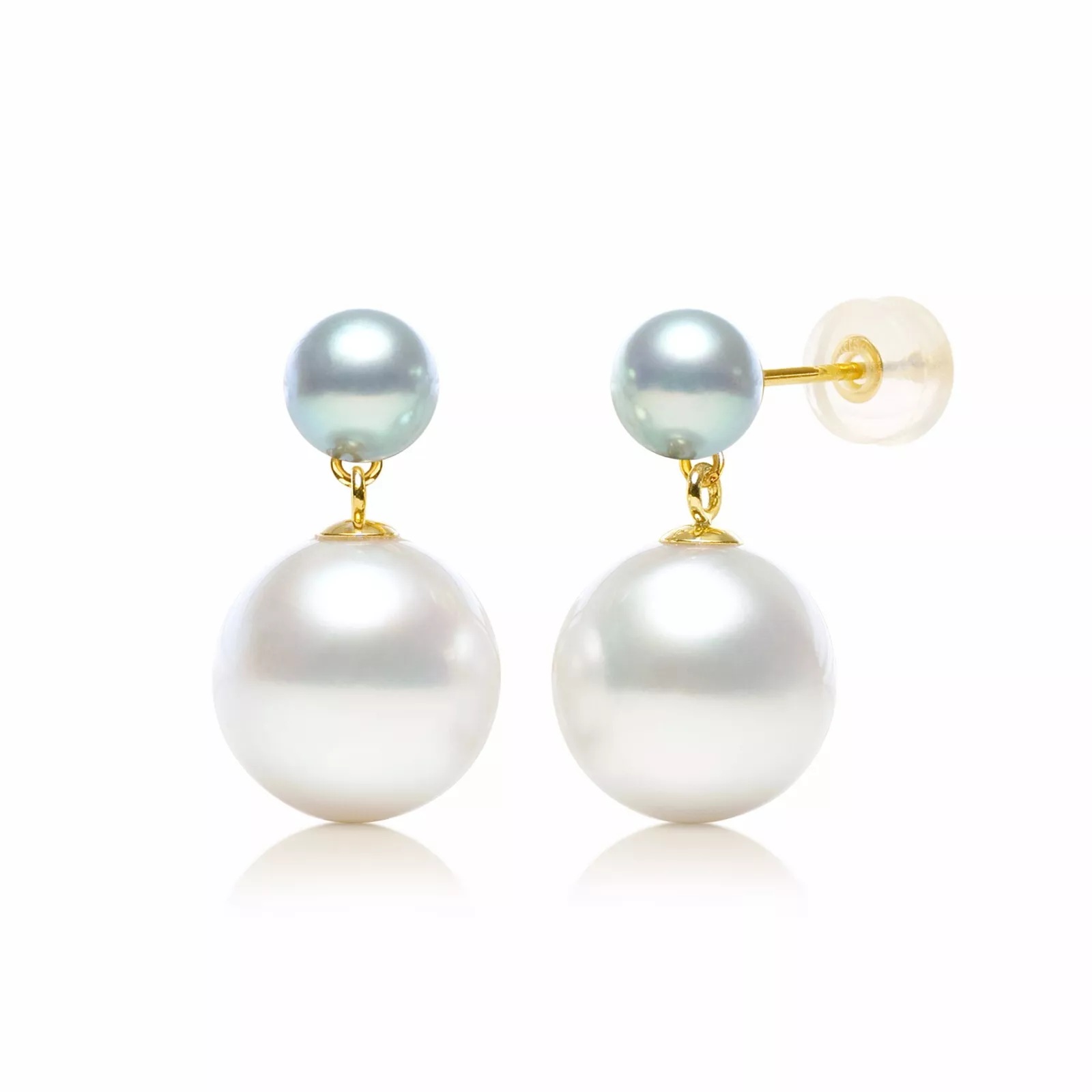실버블루아코야진주&남양진주더블라인 18k골드귀걸이