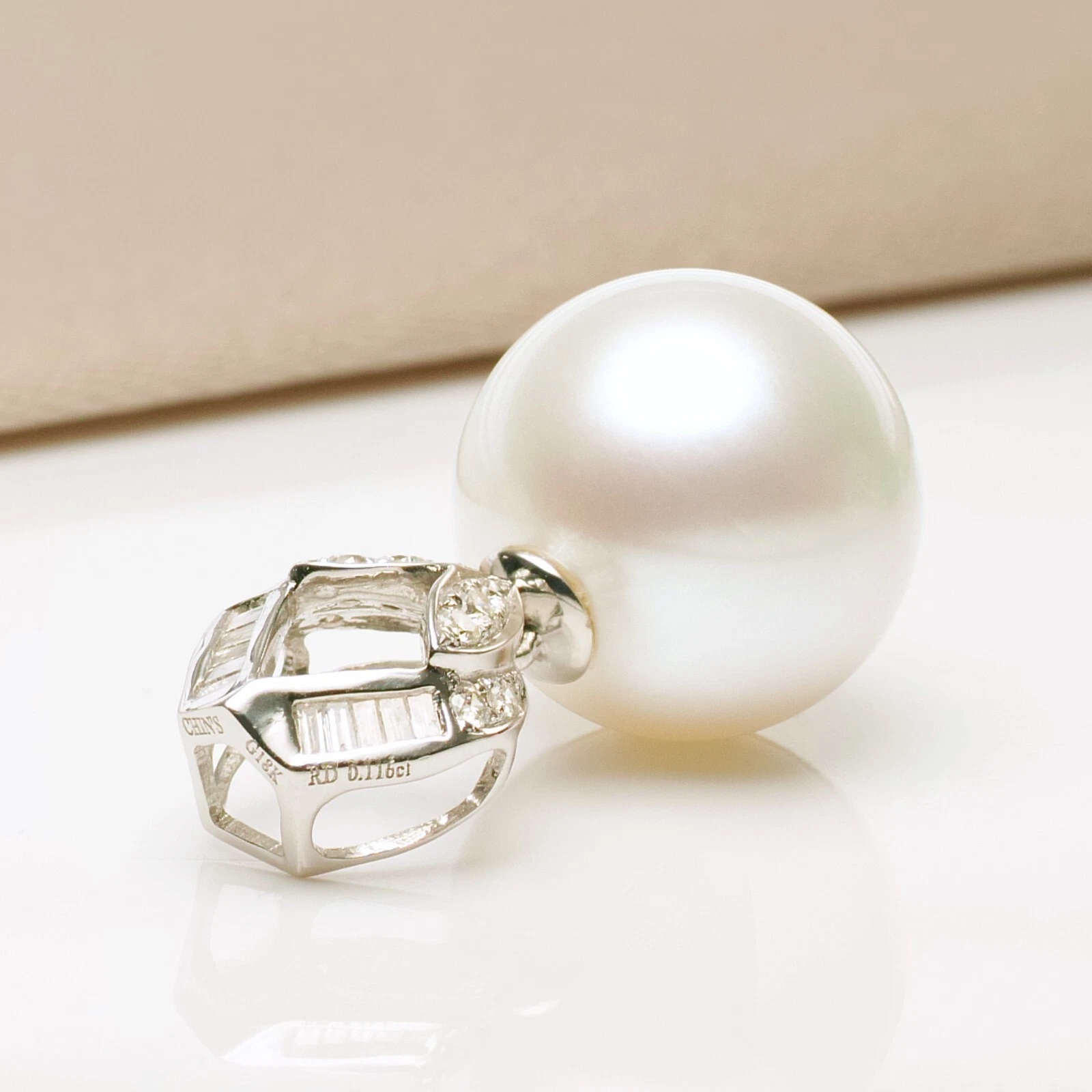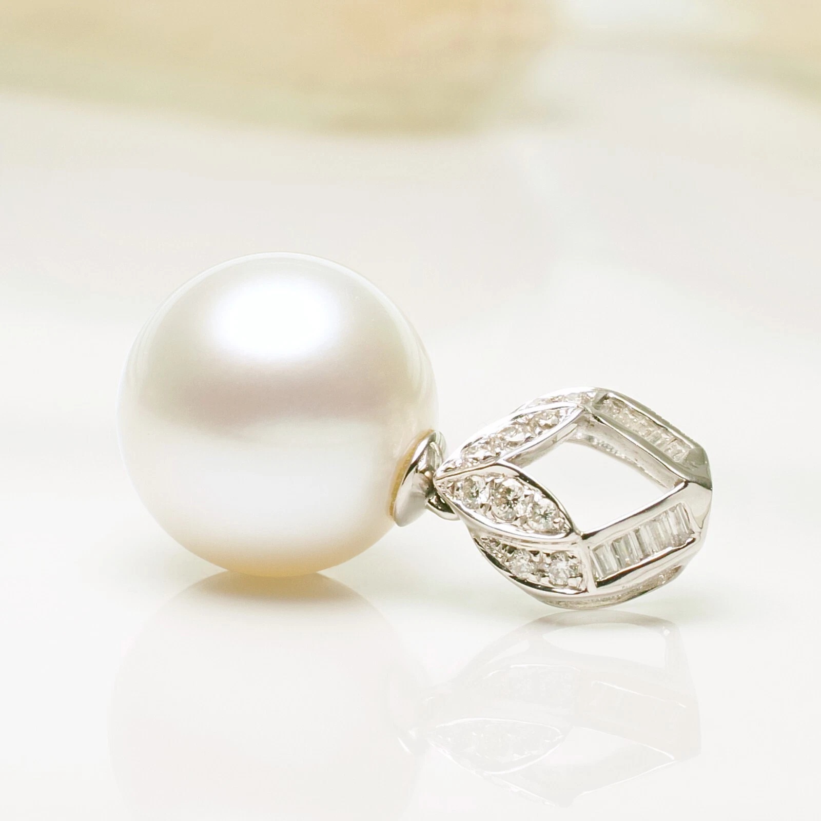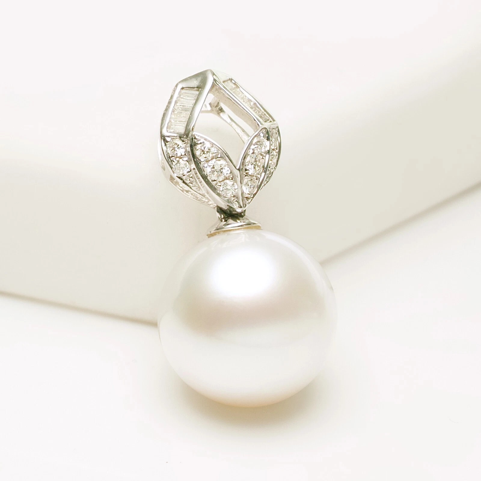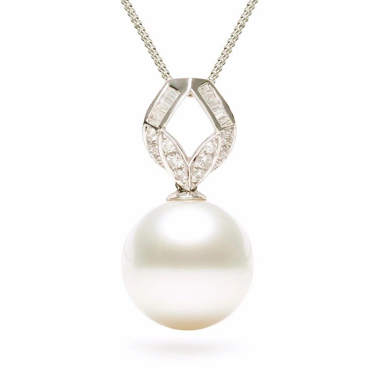13mm화이트컬러남양진주 18k화이트골드&다이아몬드 펜던트