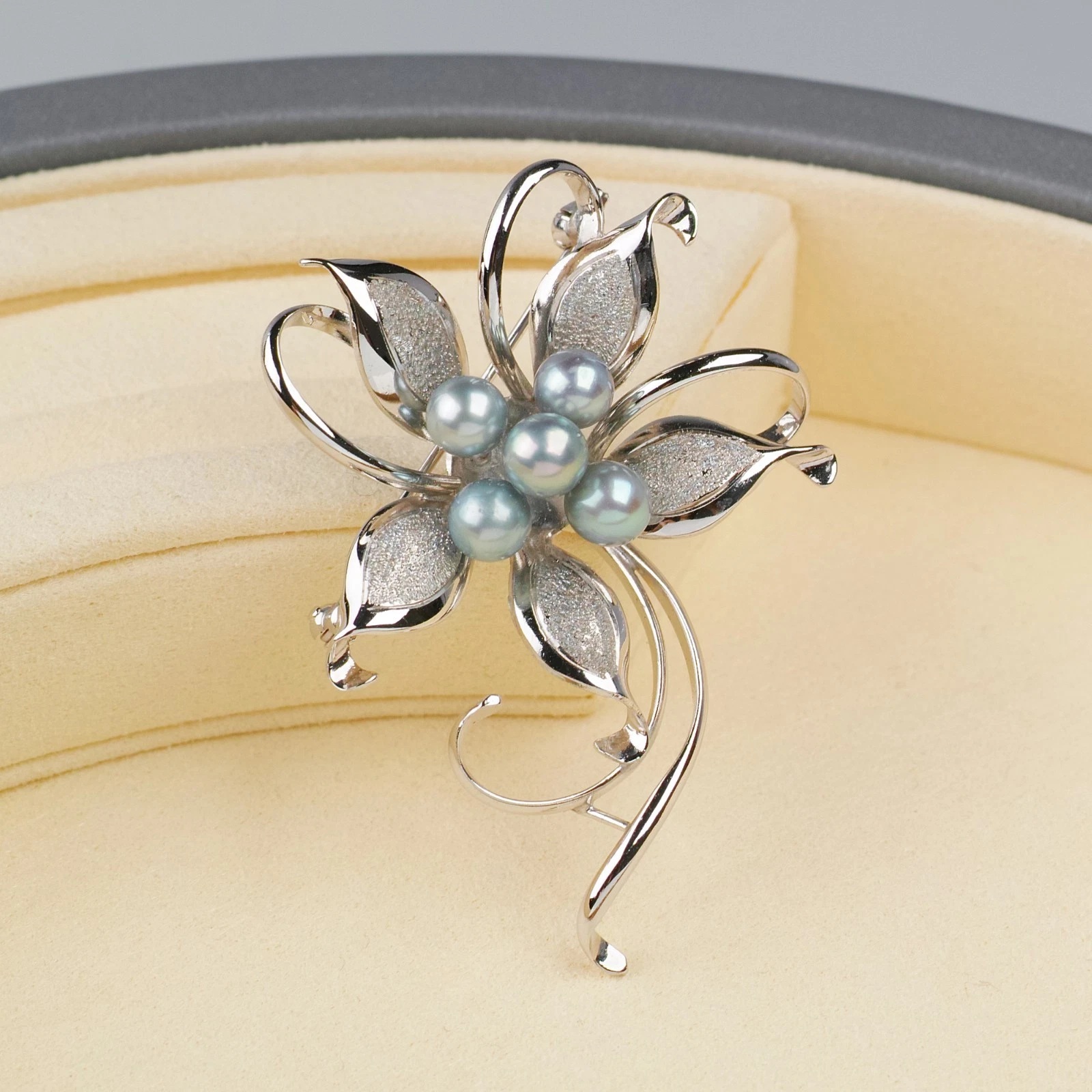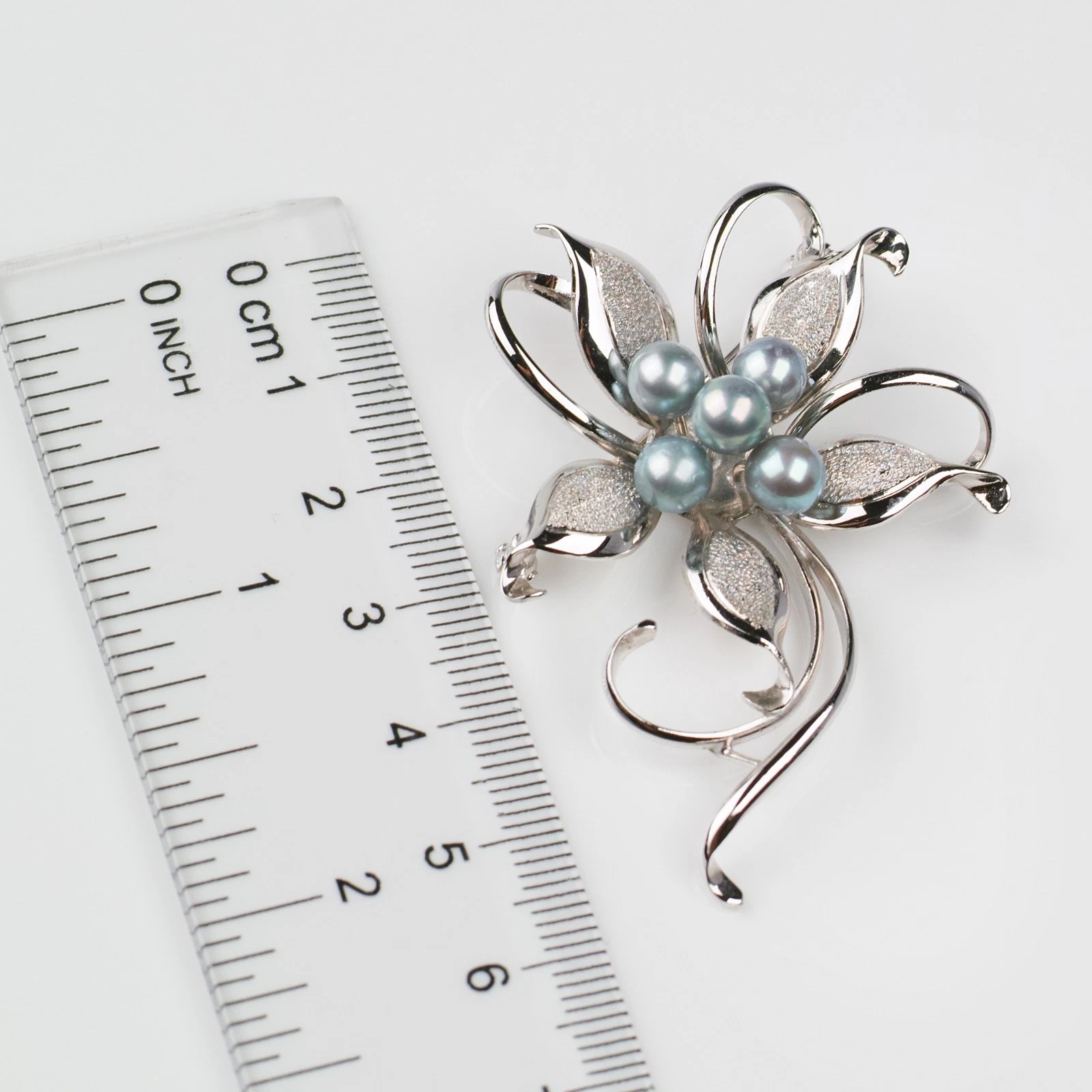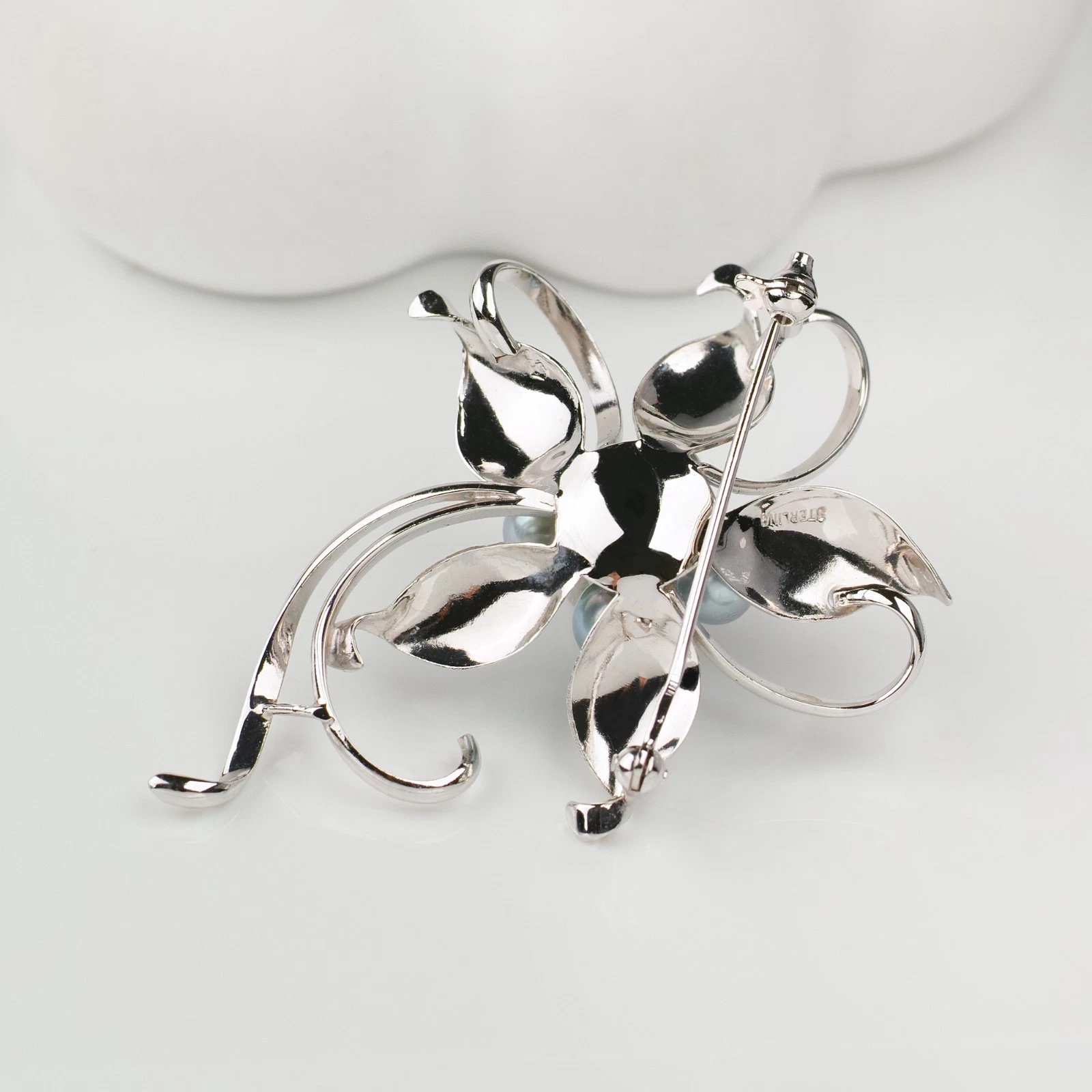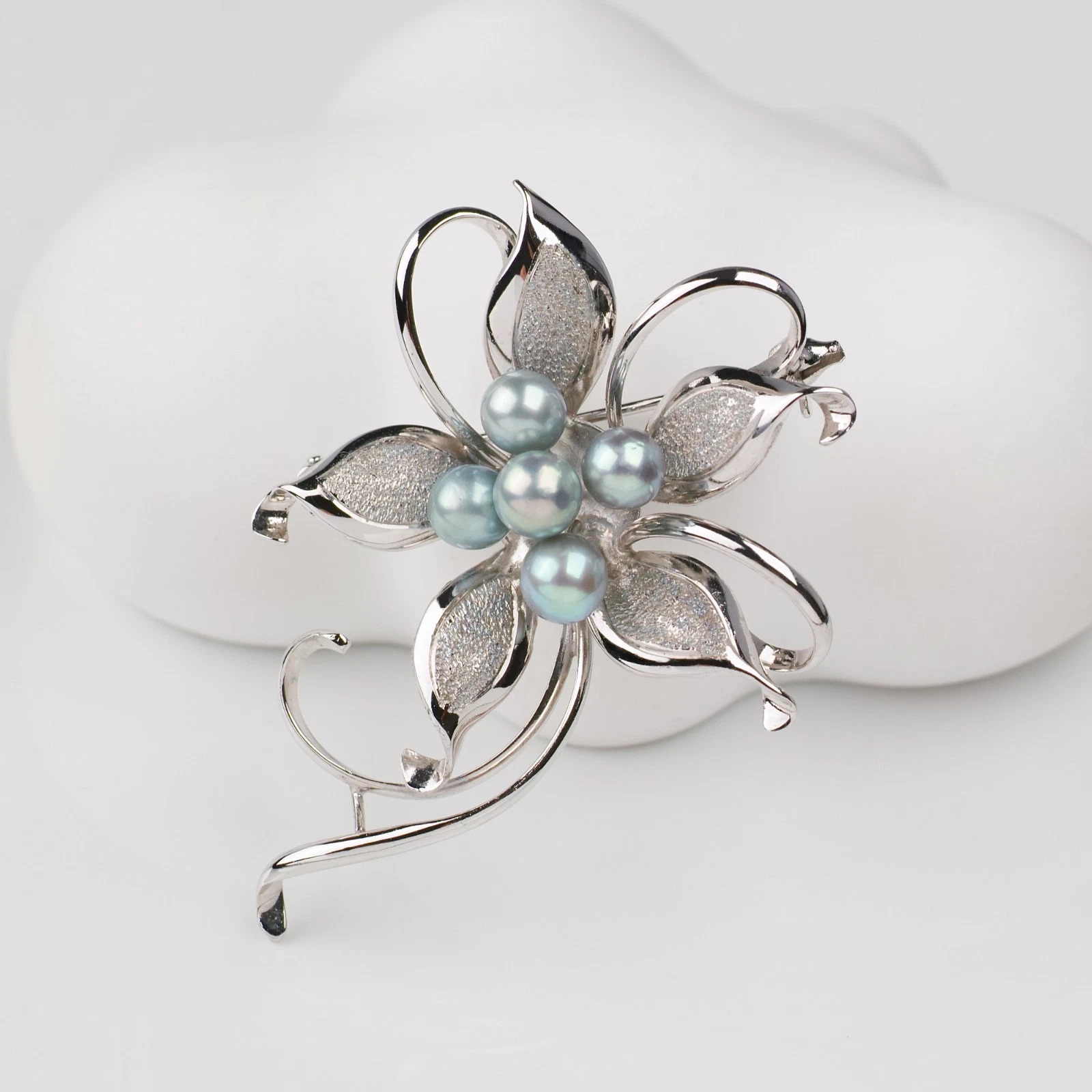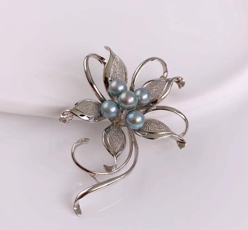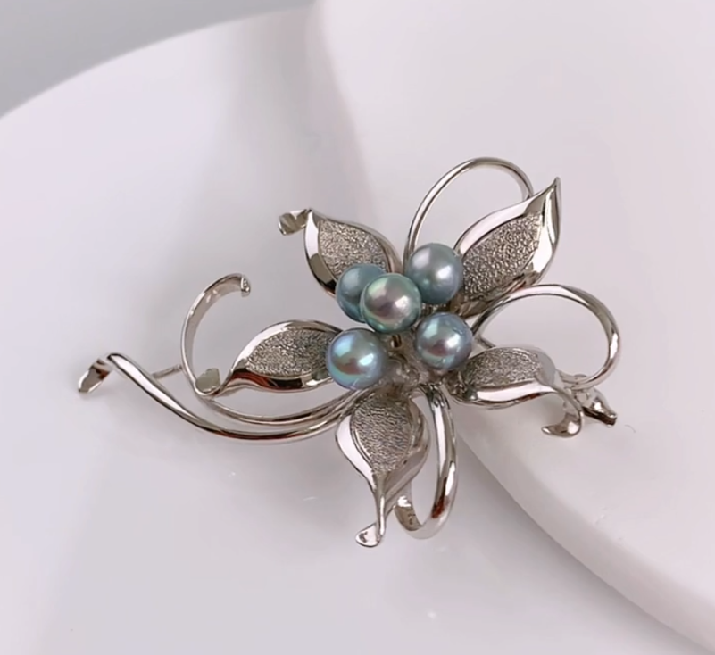 꽃모양의 쉐입에 푸른색이 도는 실버진주가