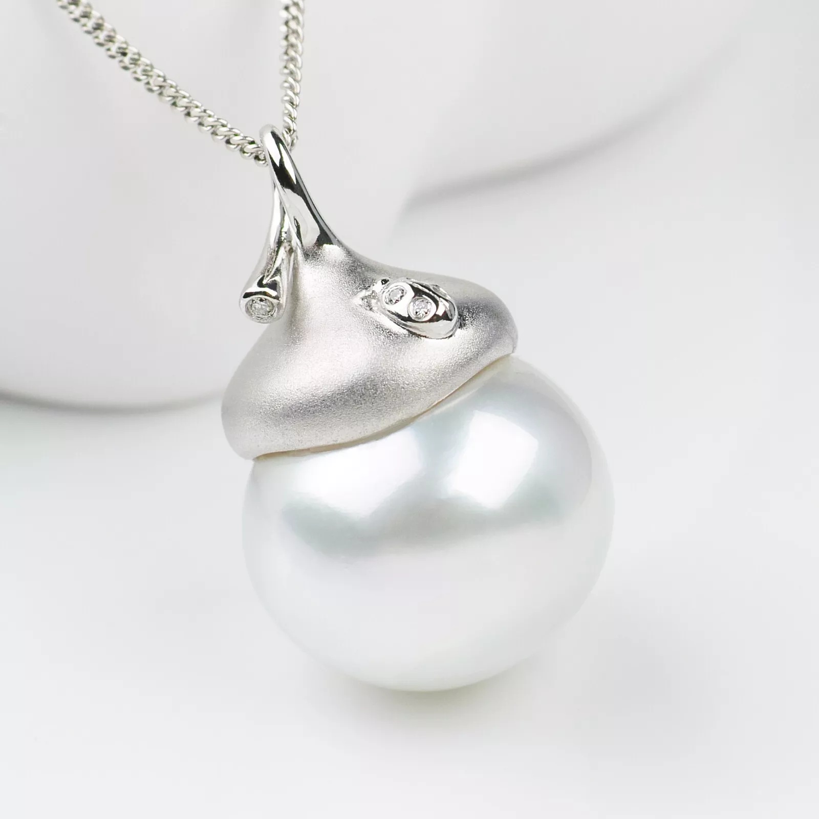14.9mm화이트컬러남양진주 18k화이트골드&다이아몬드 펜던트