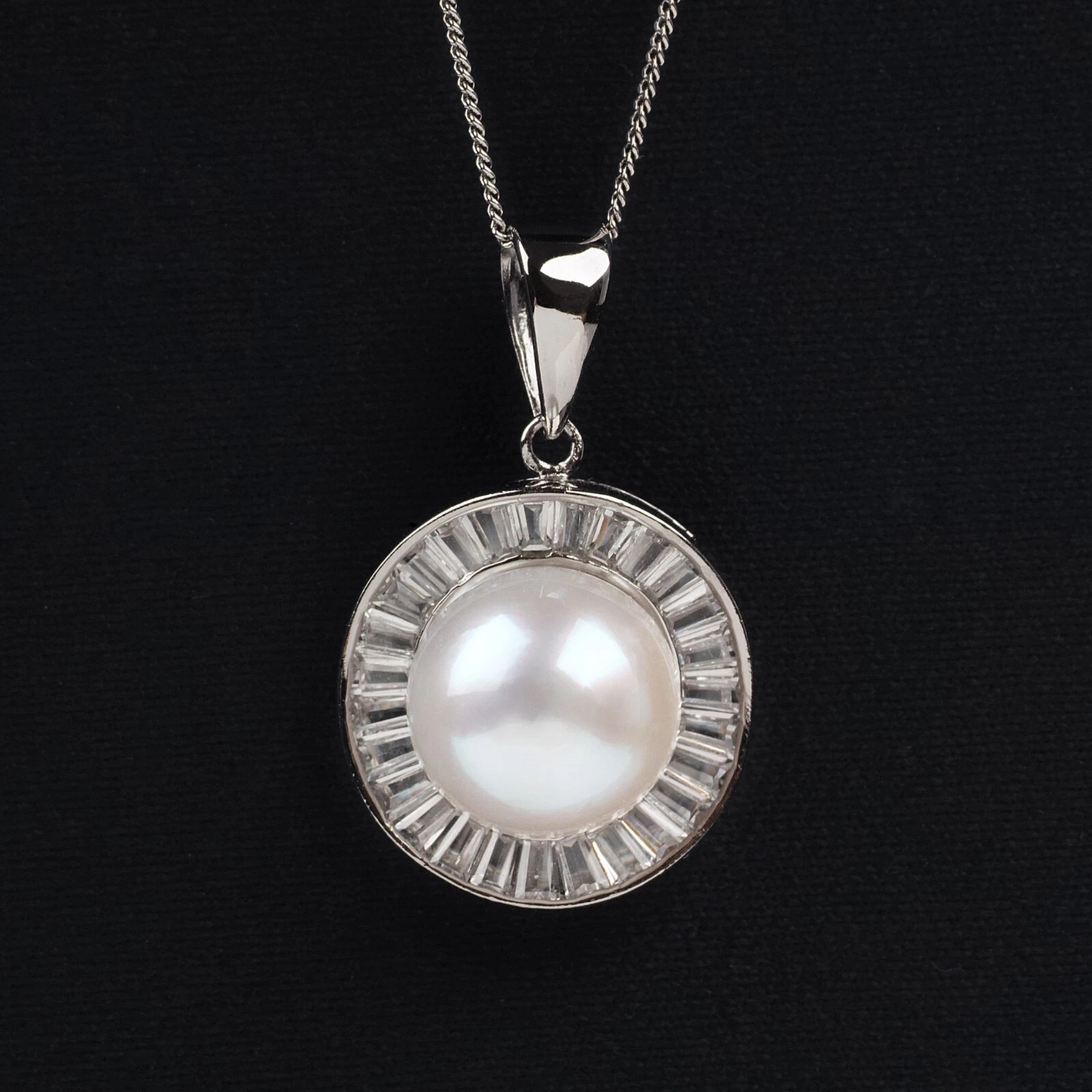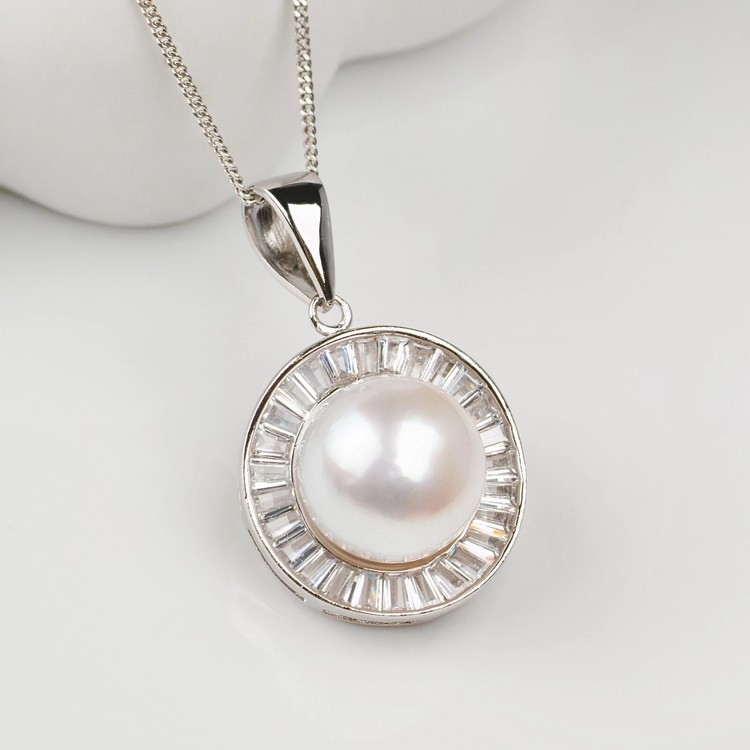 큐빅이 둘러싼 디자인으로 진주가 강조되어 펜던트가