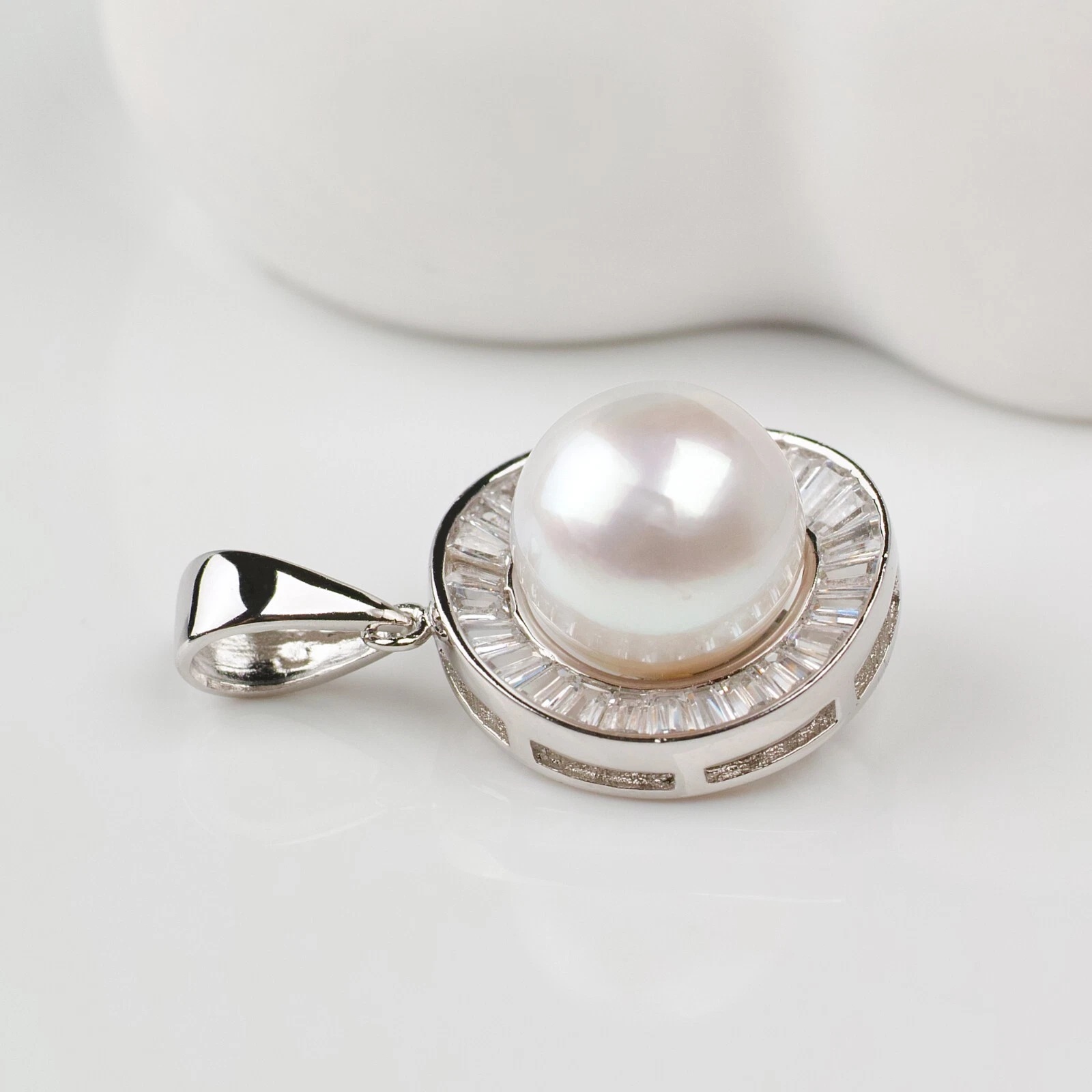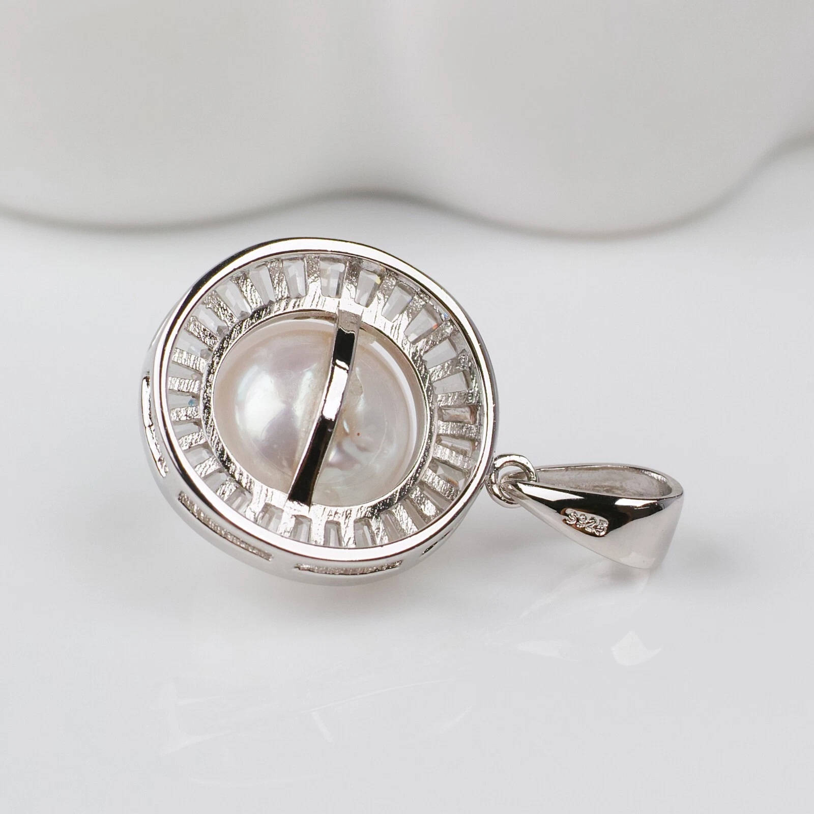 12x12.1mm 화이트컬러남양진주실버펜던트