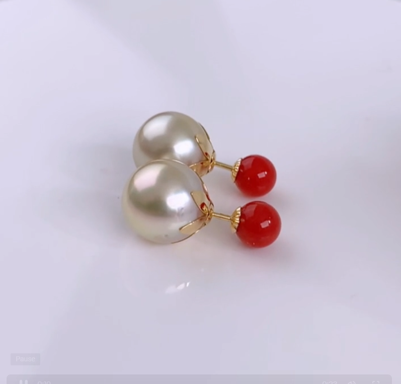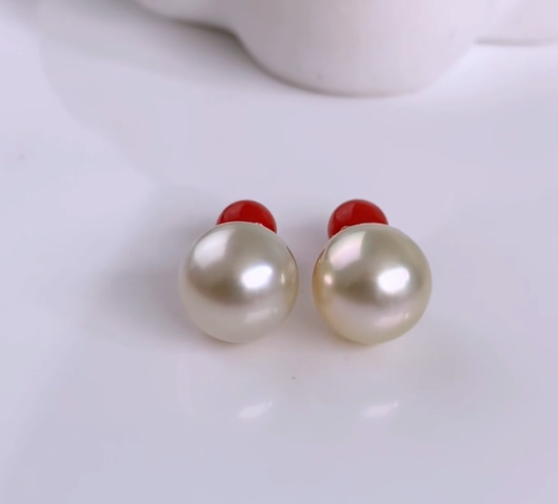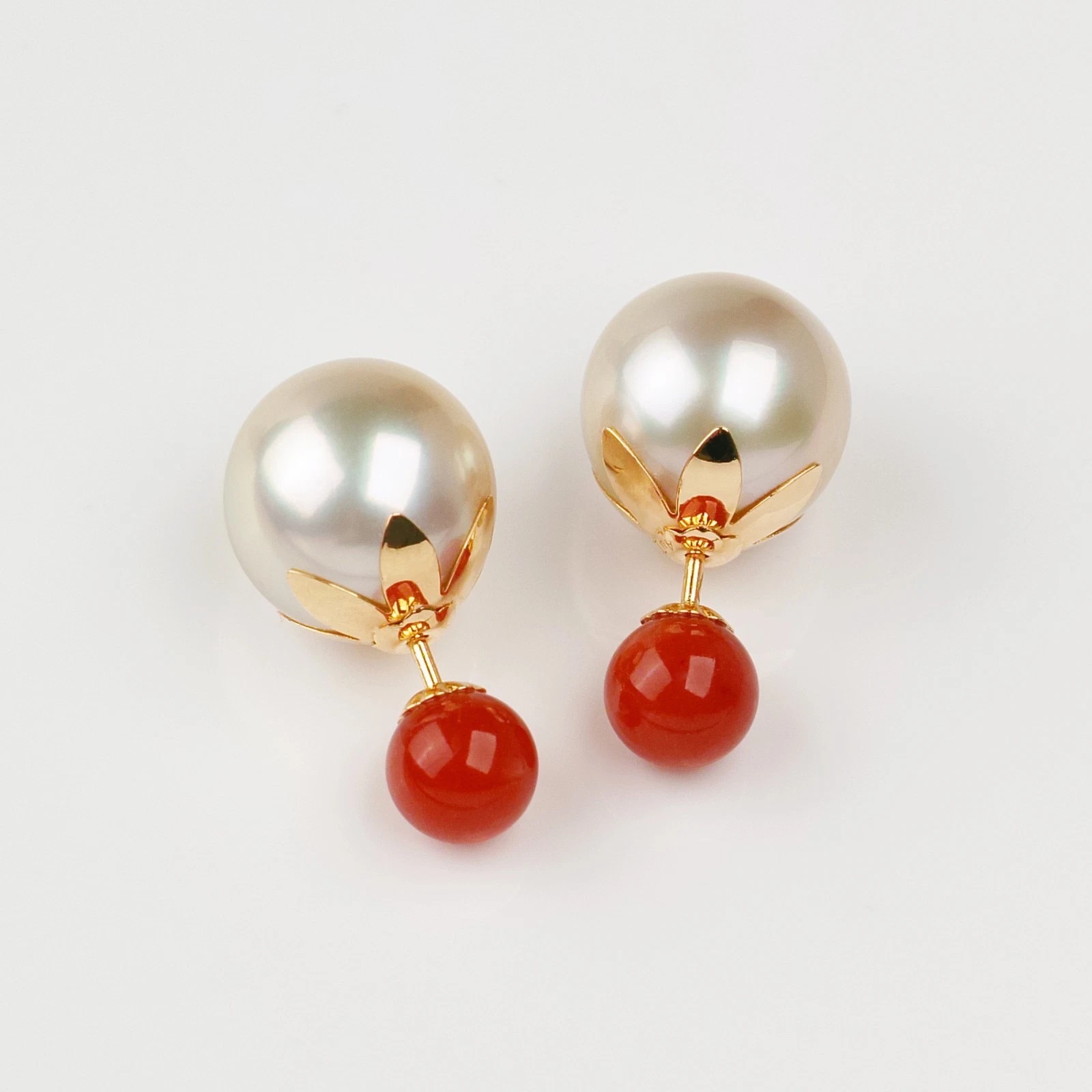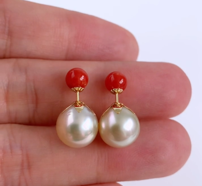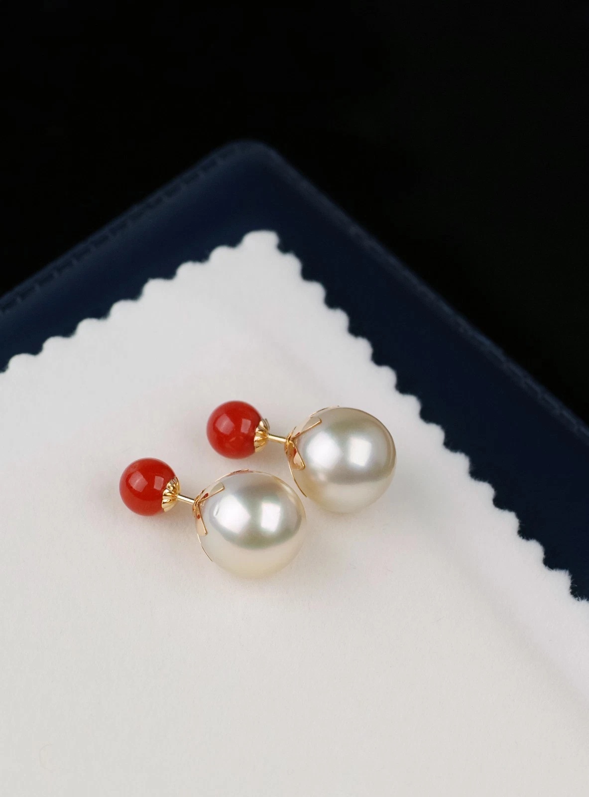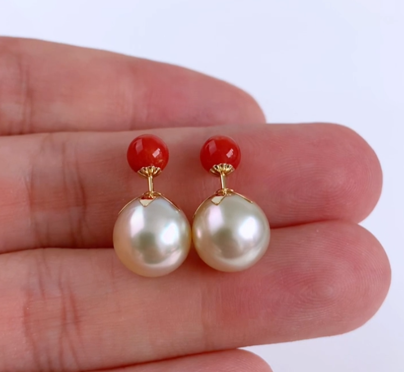 아코야진주&코랄 더블사이디드 18k골드귀걸이