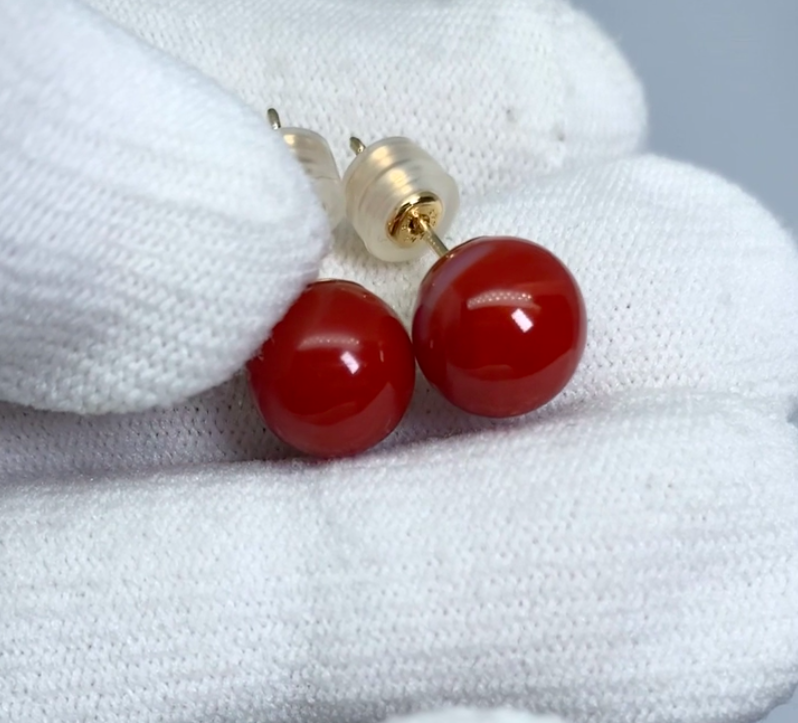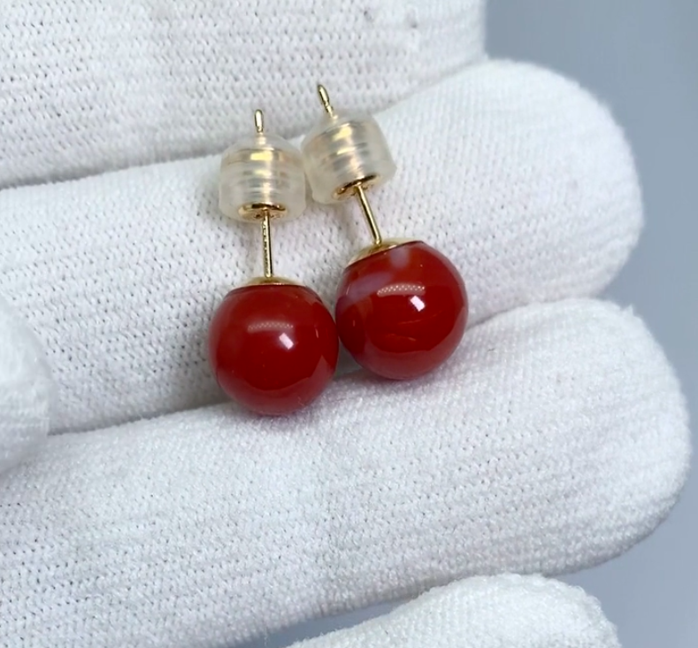 9.3mm레드코럴18k골드귀걸이
