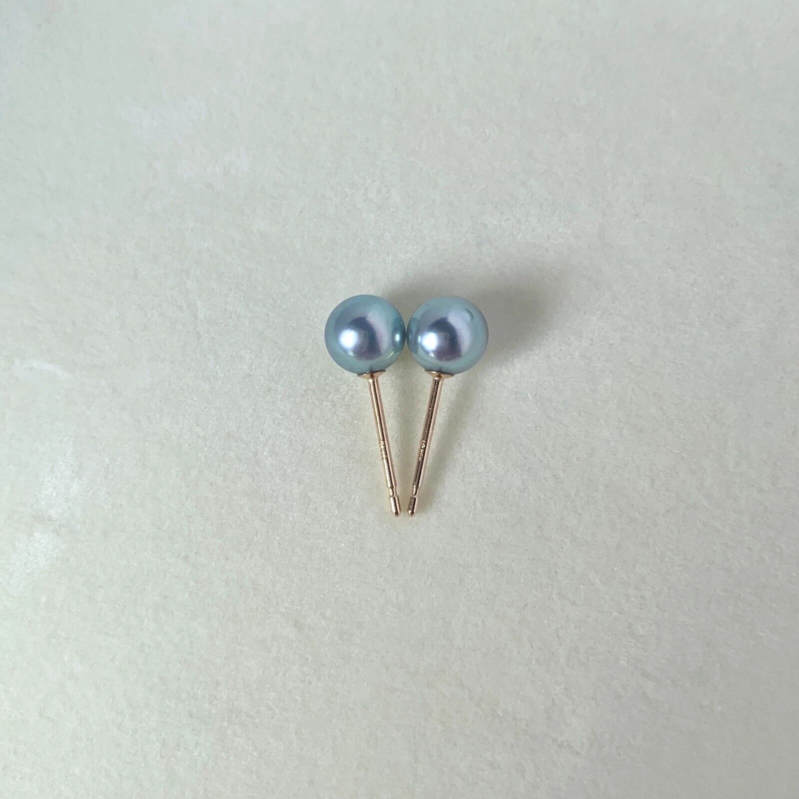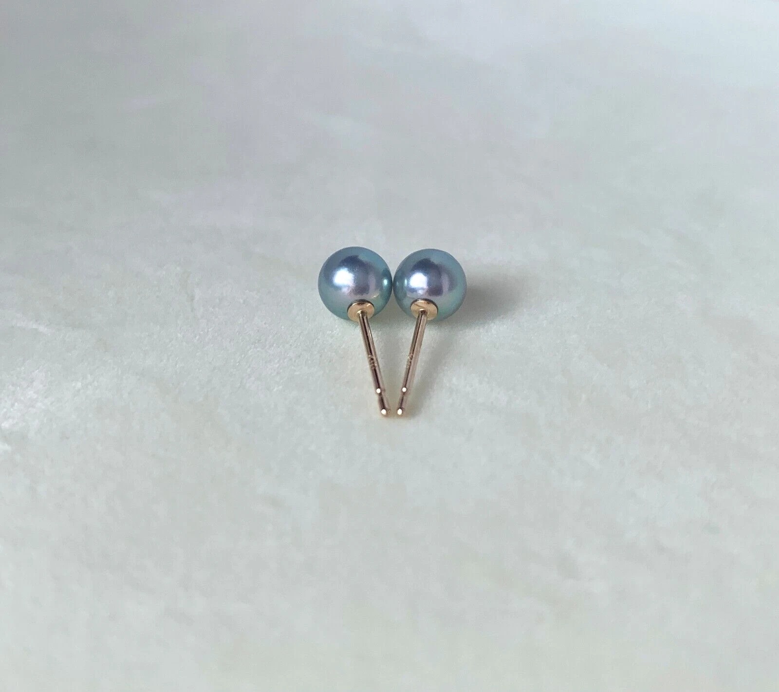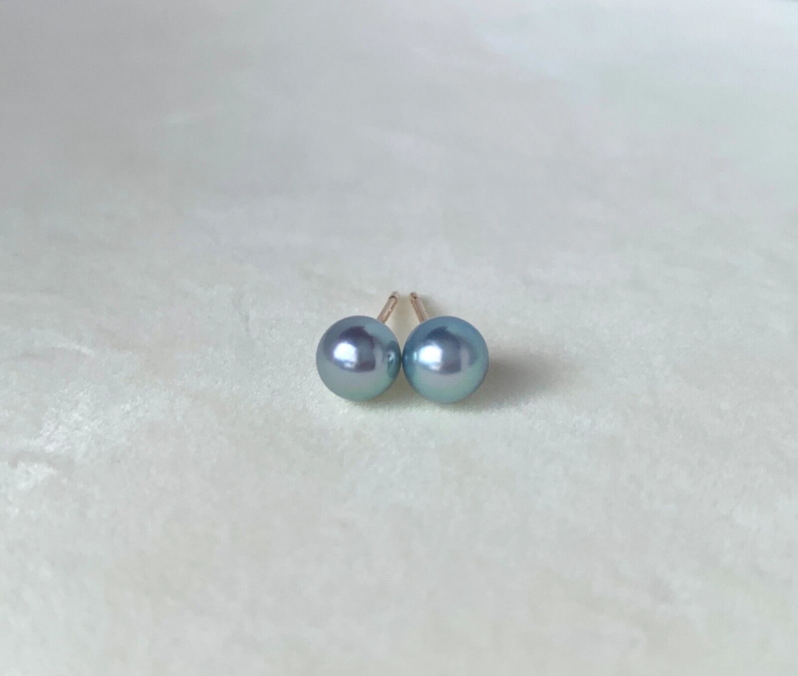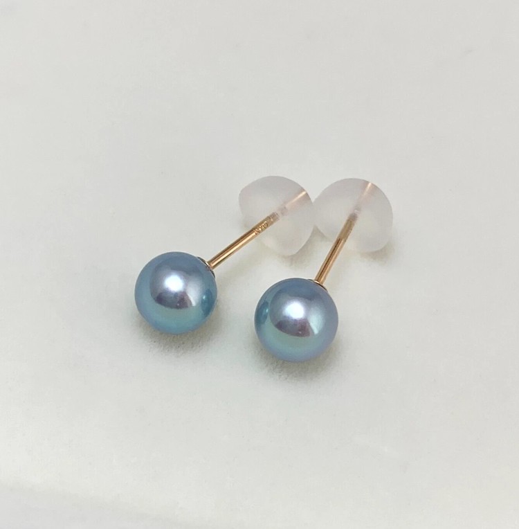 5.5mm실버블루컬러아코야진주 10k골드귀걸이