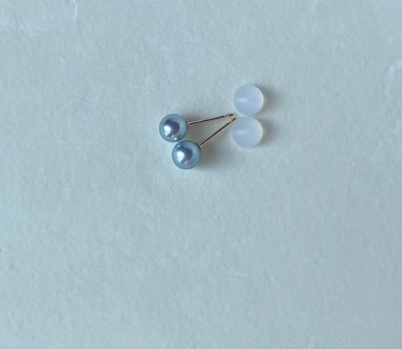 내츄럴컬러의 실버블루아코야진주 귀걸이입니다.