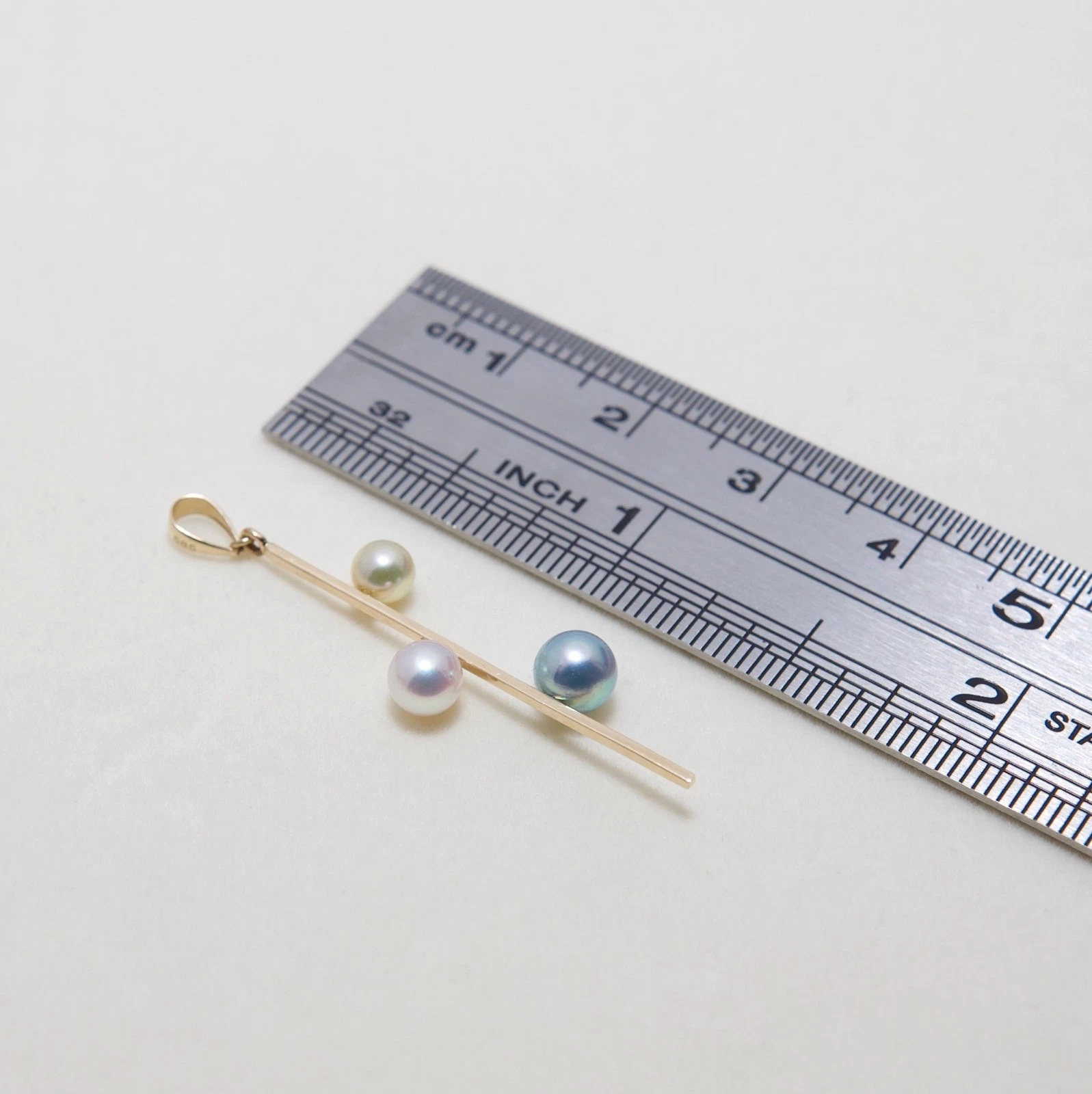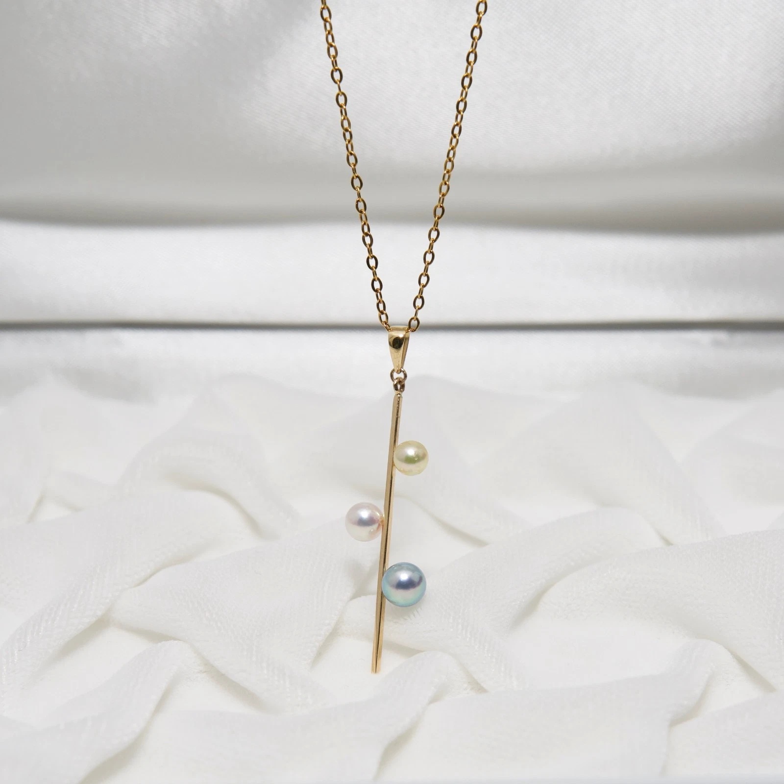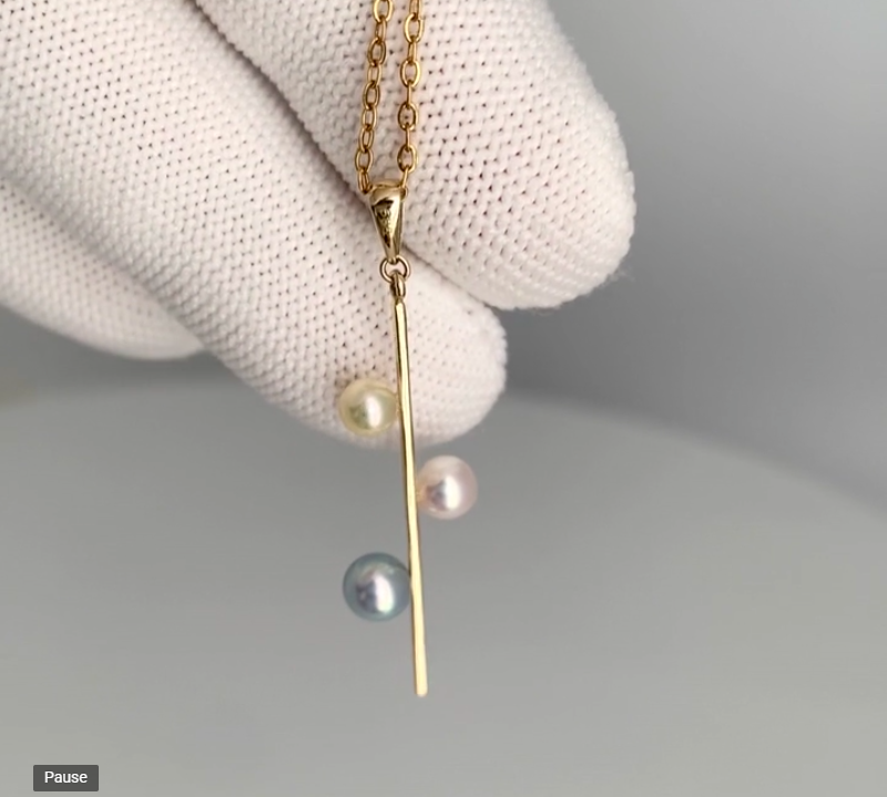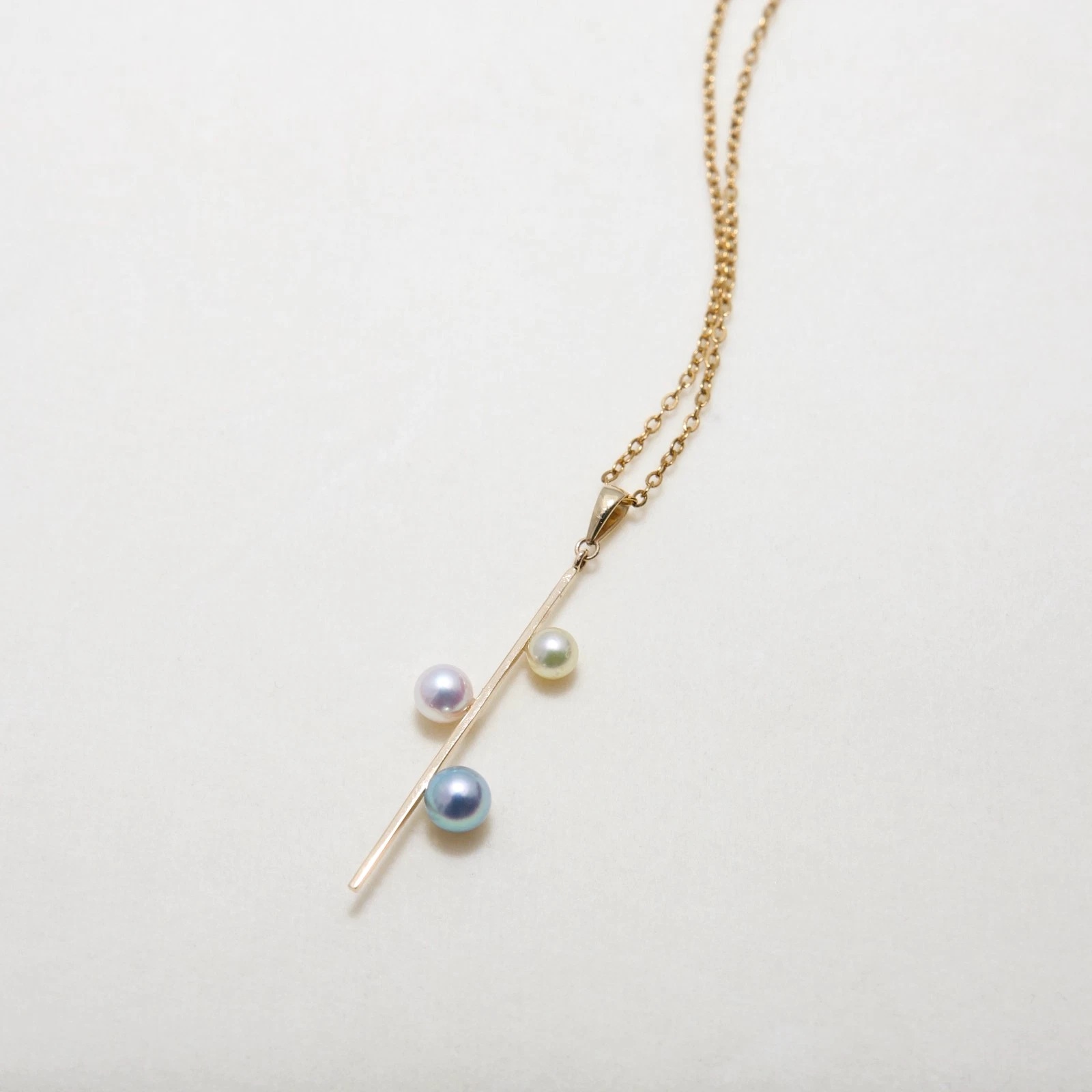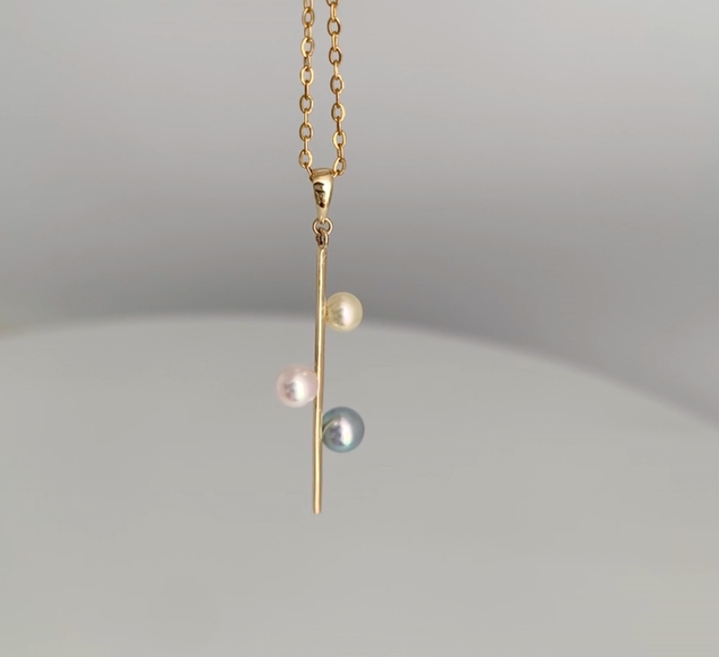 3개의 다른 아코야진주가 막대형14K골드에 세팅되어