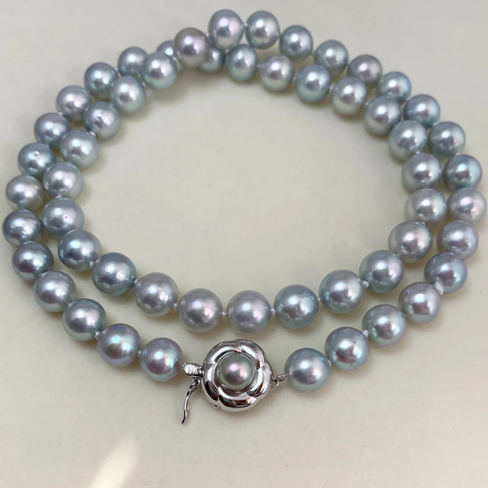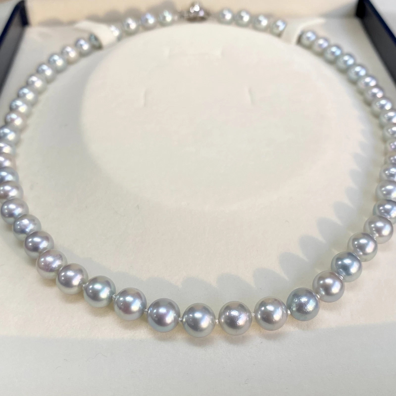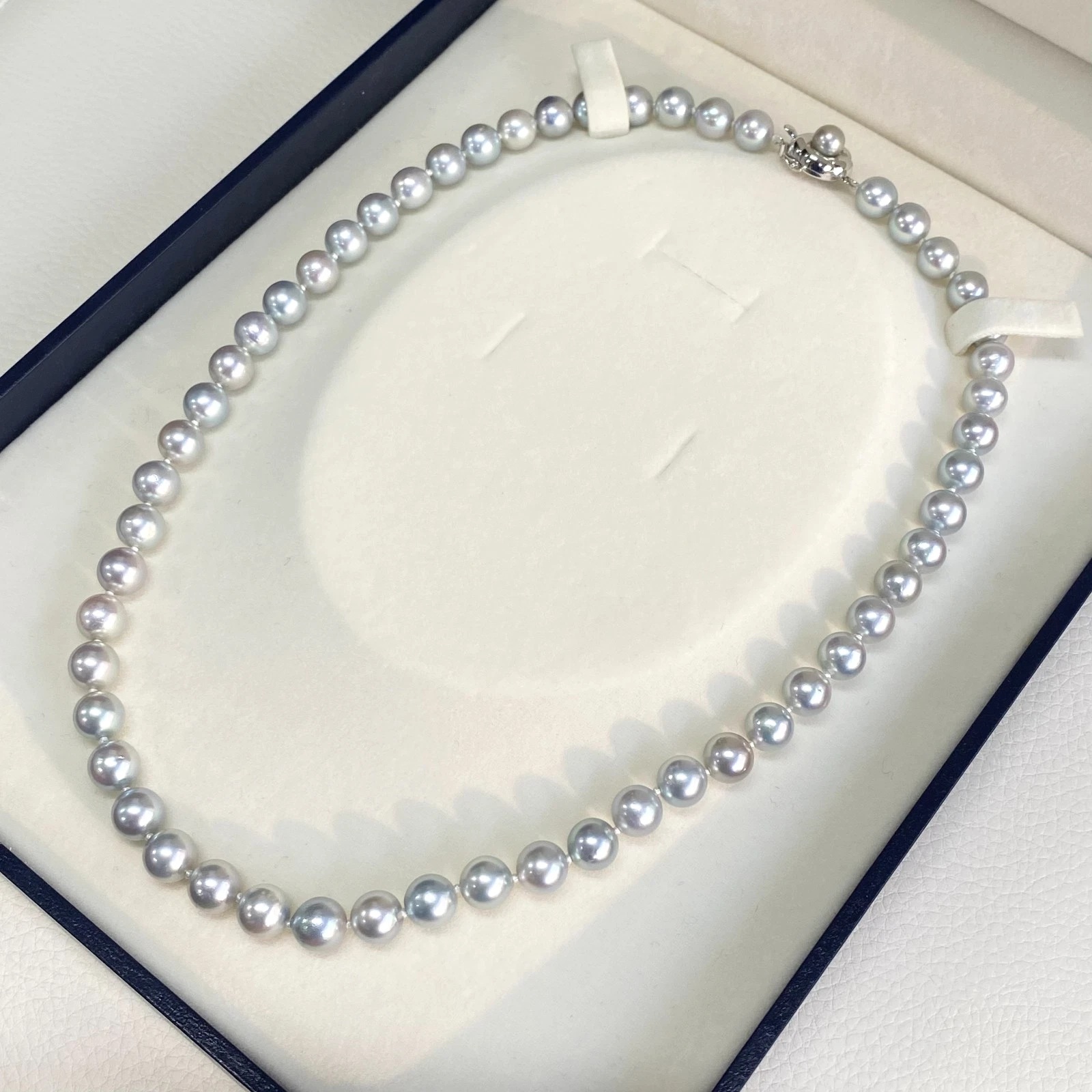 7~7.5mm 실버로즈컬러아코야진주목걸이