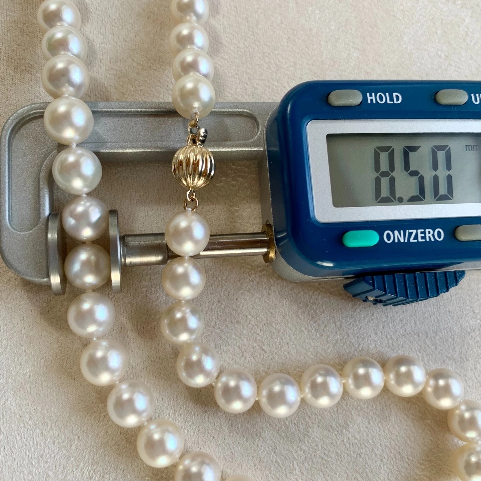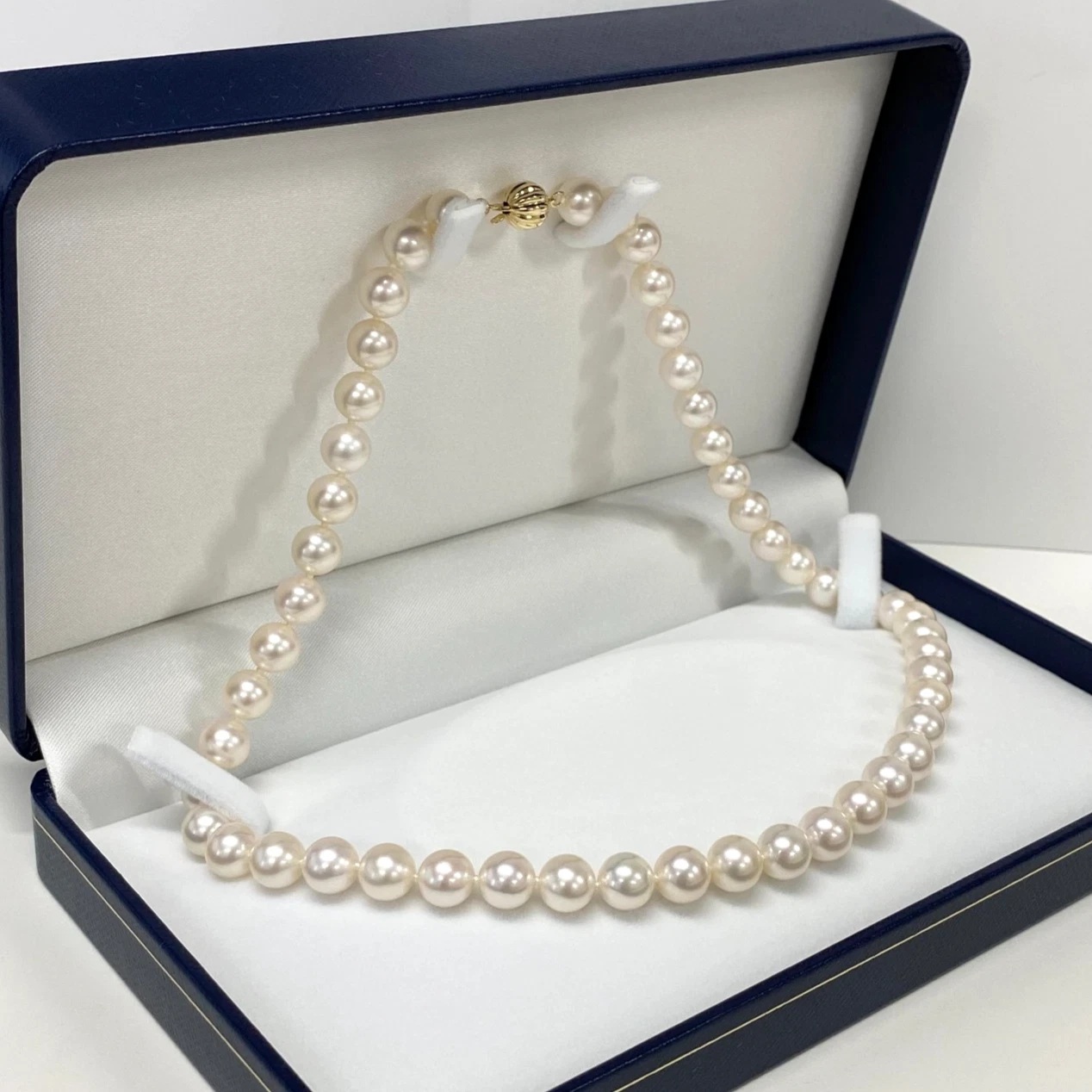 크림화이트컬러의 퀄리티 좋은 아코야 진주목걸이입니다.