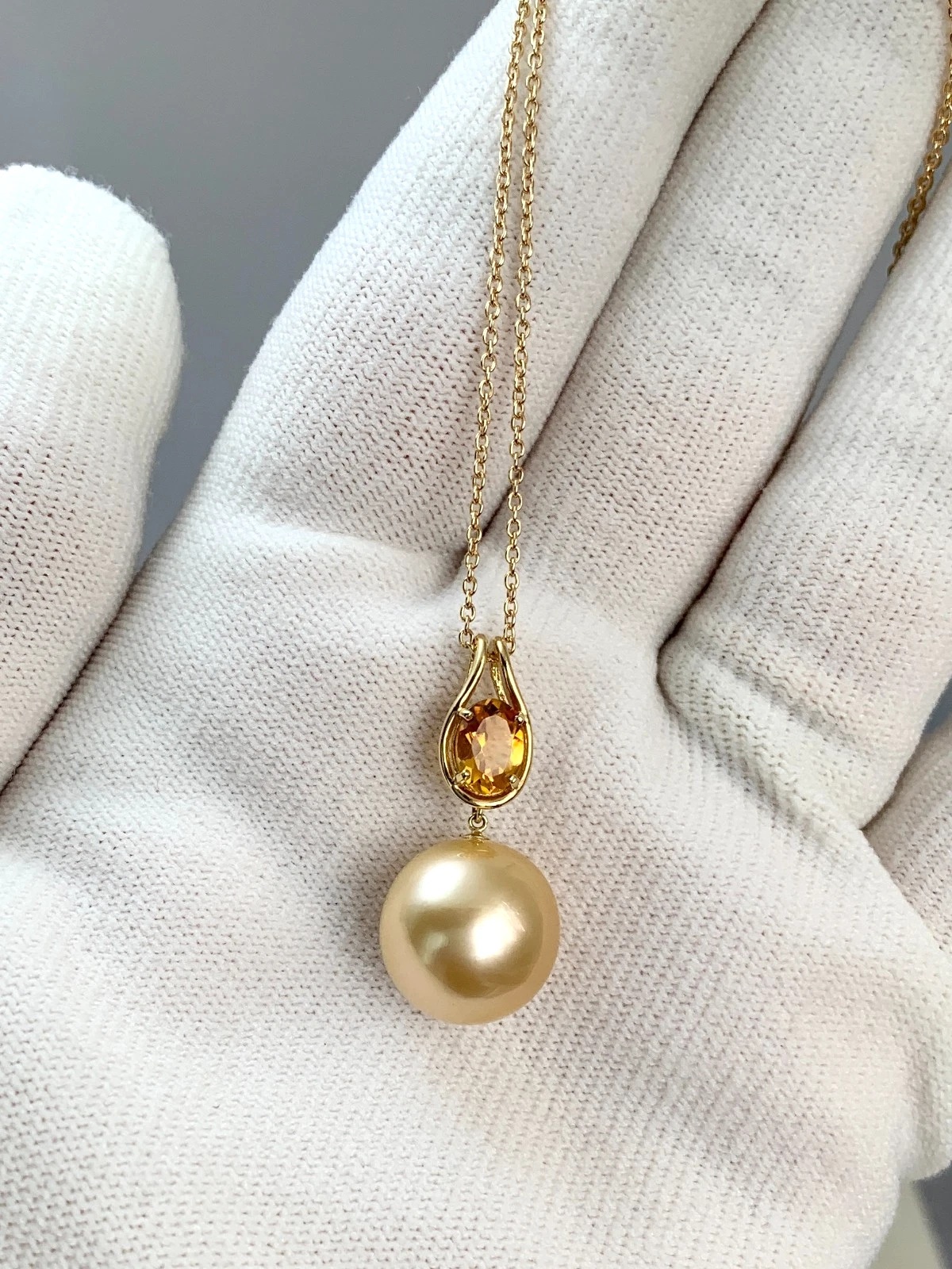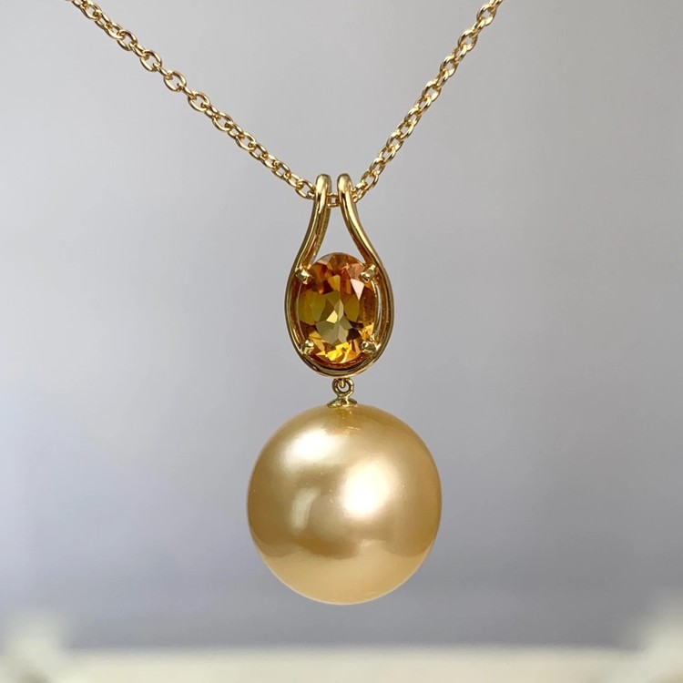 13.2mm골드컬러남양진주/시트린 18k골드펜던트