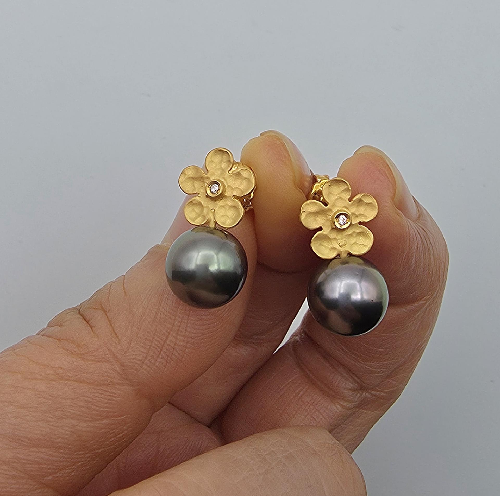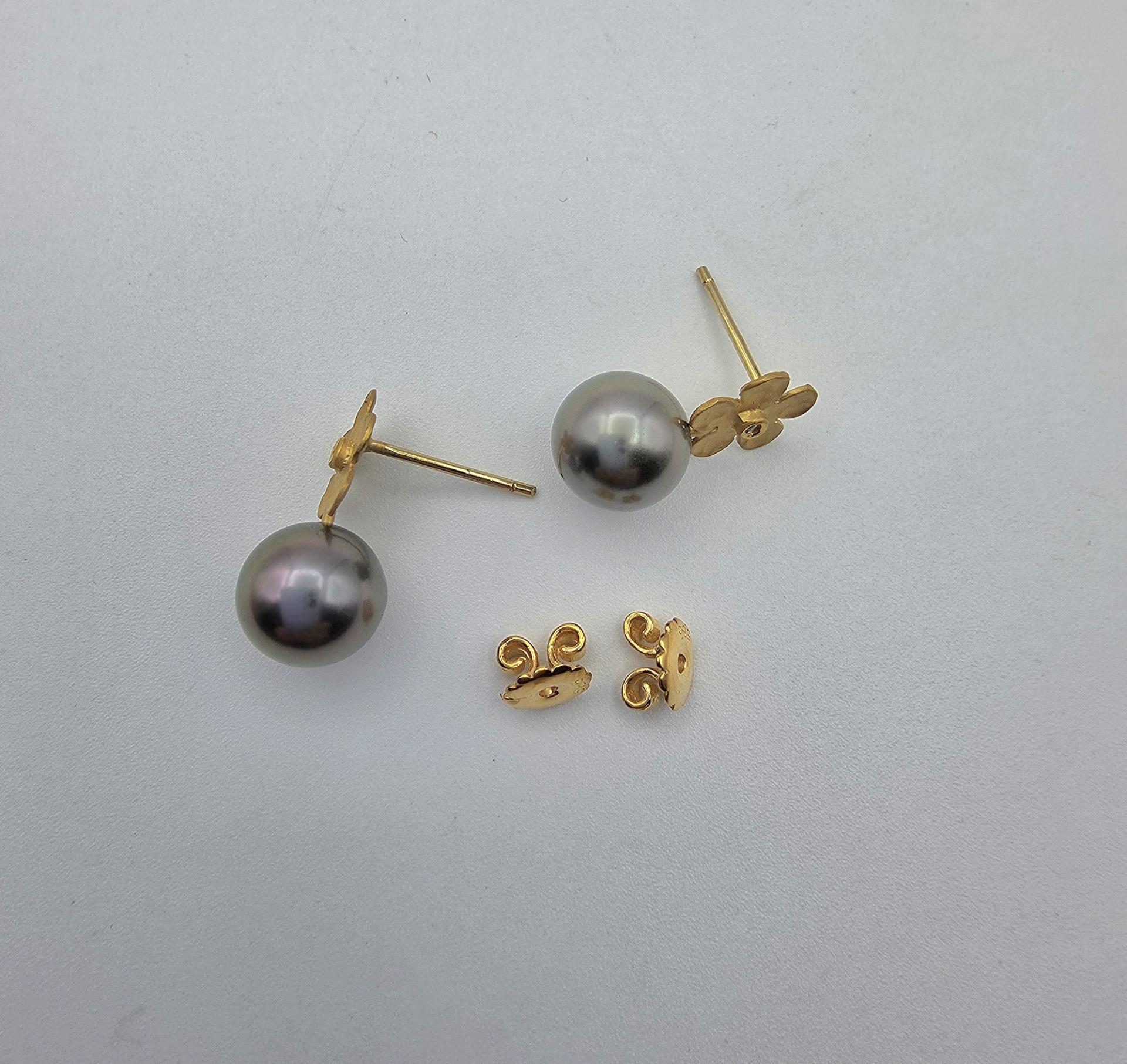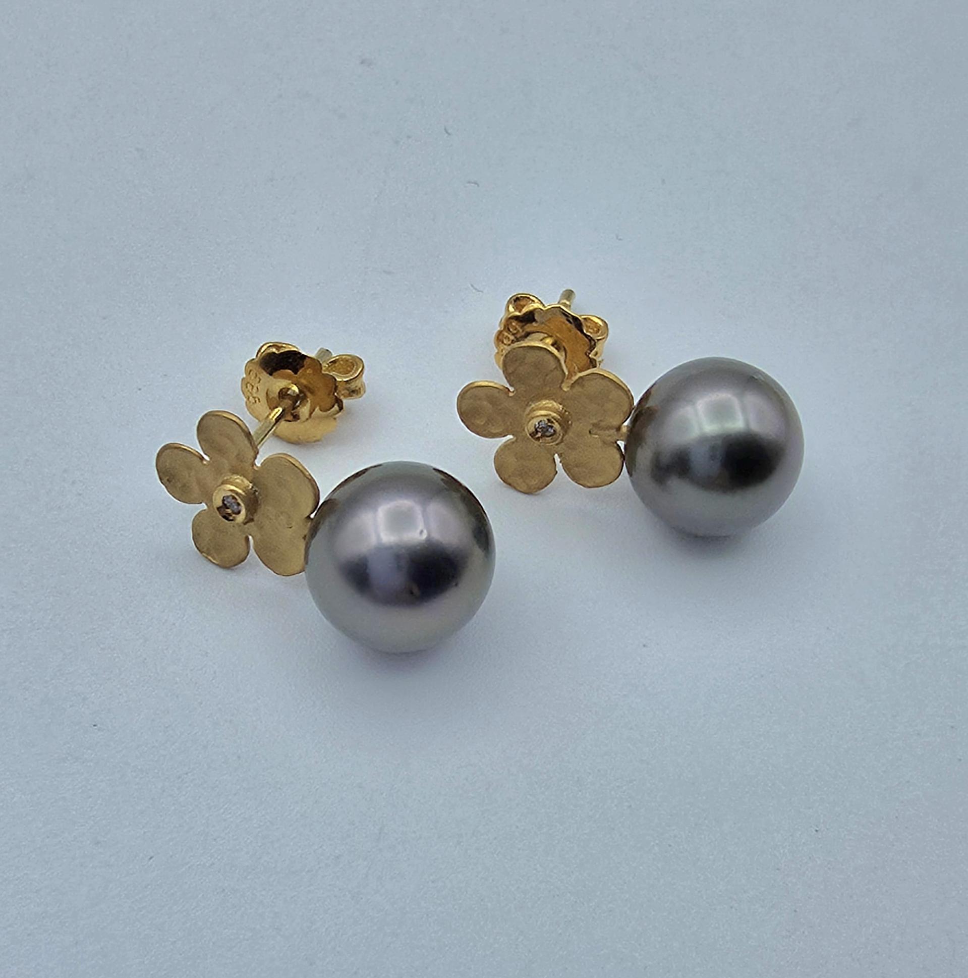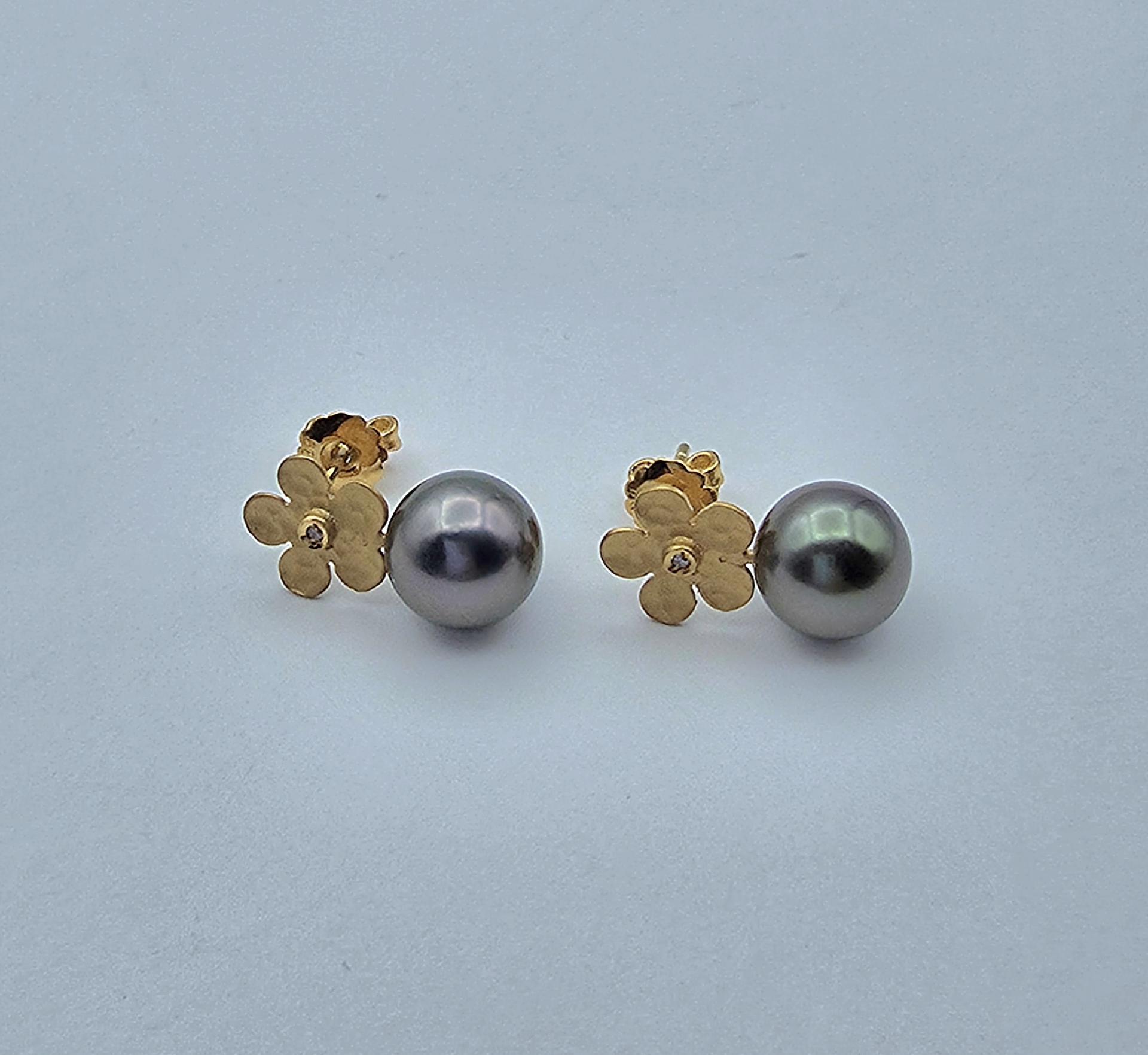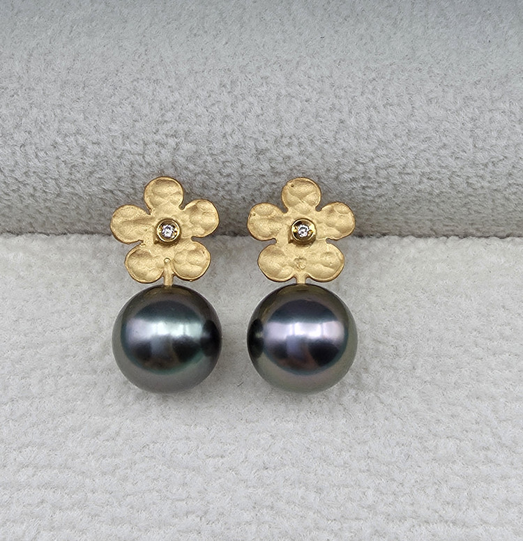 9.3mm타히티흑진주14k골드플라워귀걸이