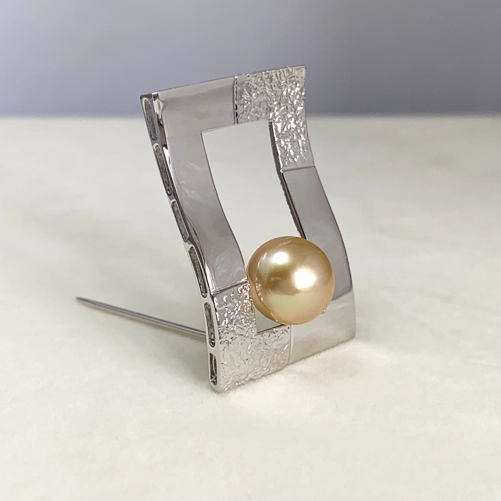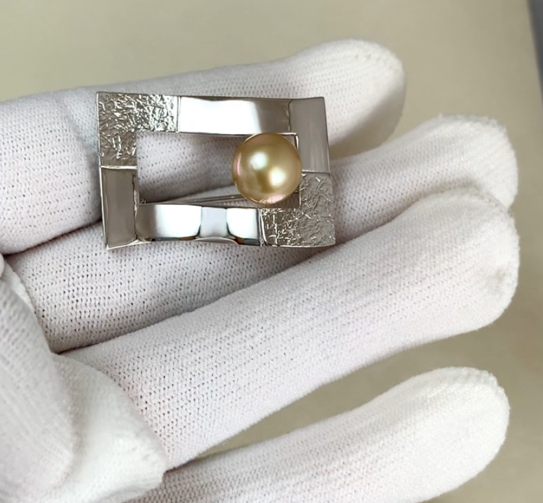 9.9mm 골드드컬러남양진주실버브로치