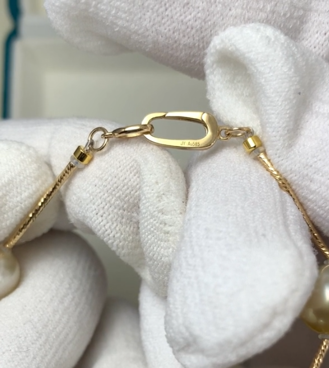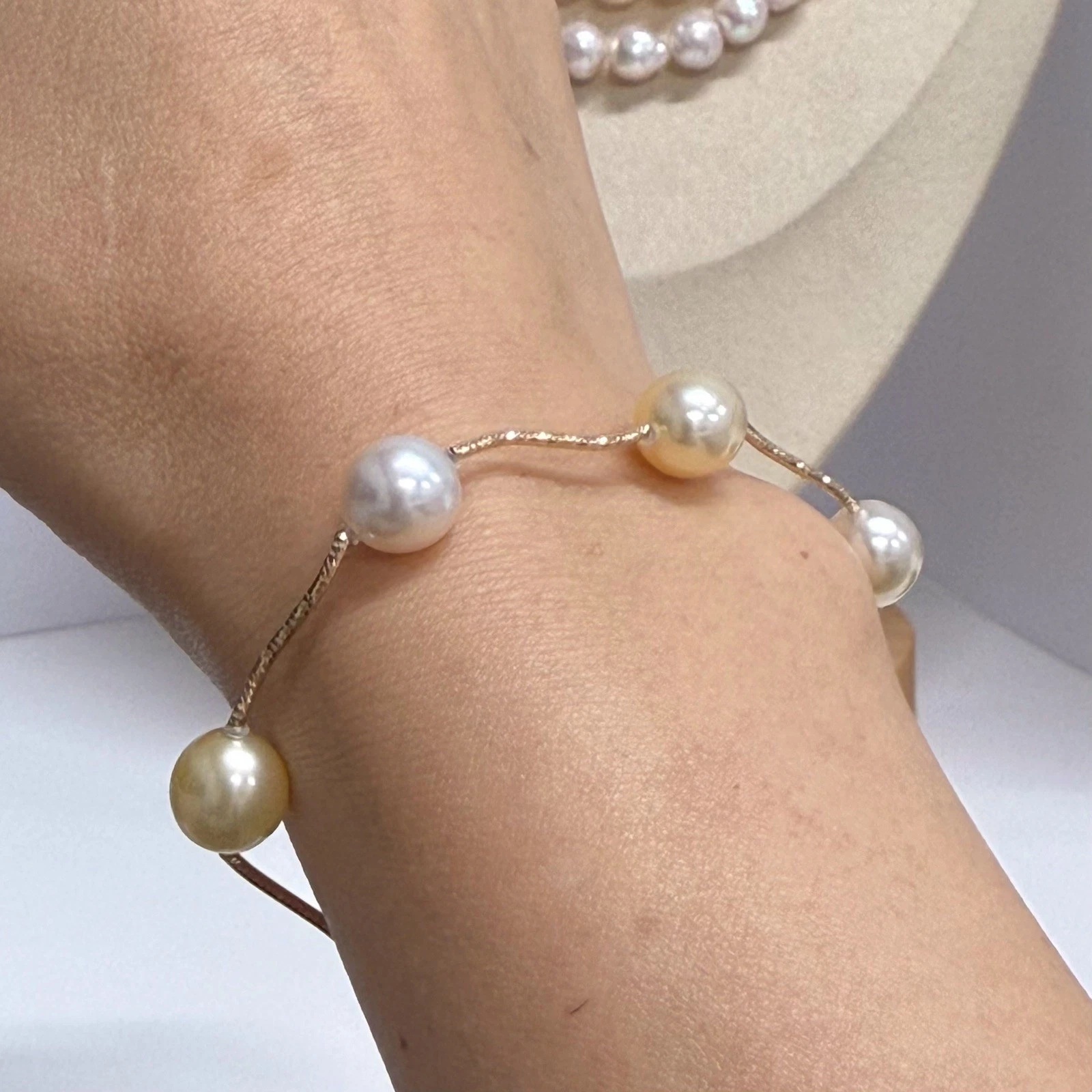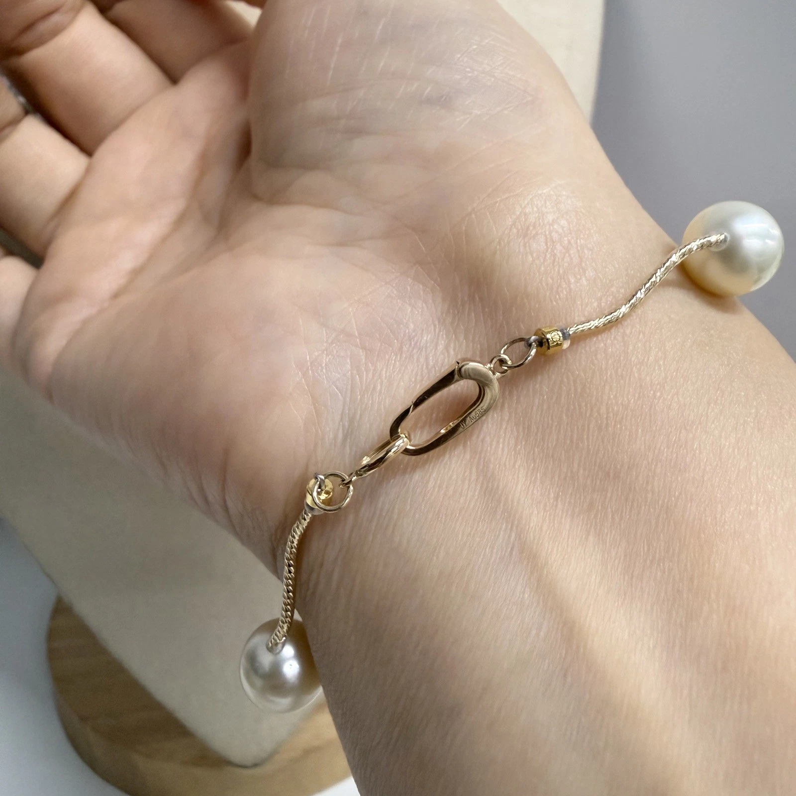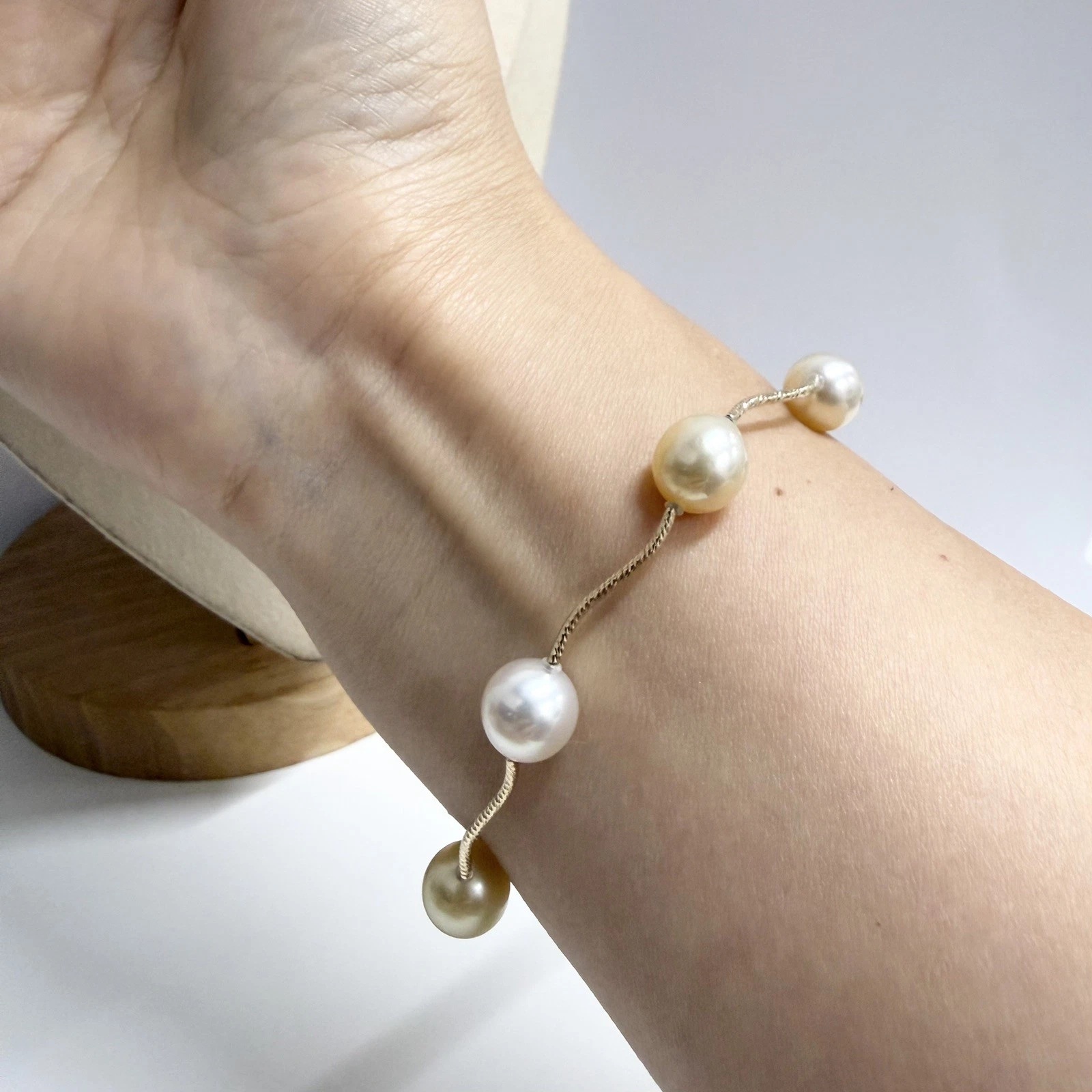 멀티컬러의 남양양진주와 14k골드의 매치가 고급스러운 팔찌입니다.