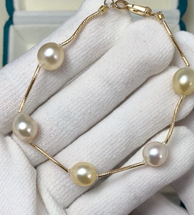 9.1~9.4mm 멀티컬러14K골드남양진주팔찌