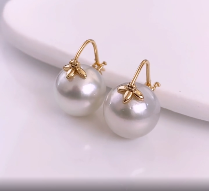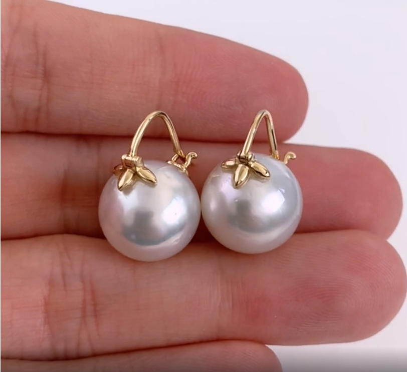 아주 큼직한 사이즈의 화이트 남양진주 귀걸이입니다.