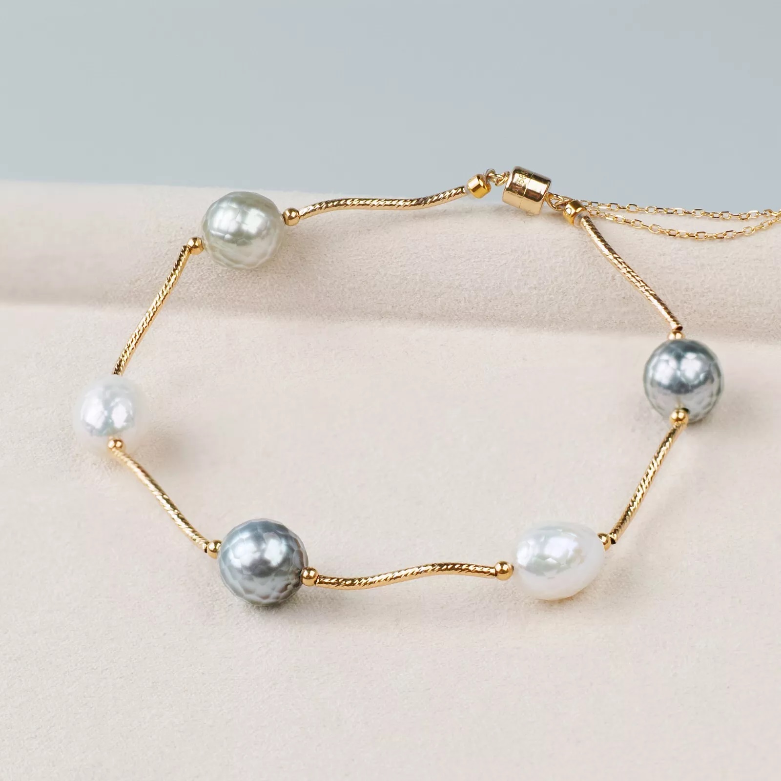 8~9mm 멀티컬러남양진주14K골드 팔찌